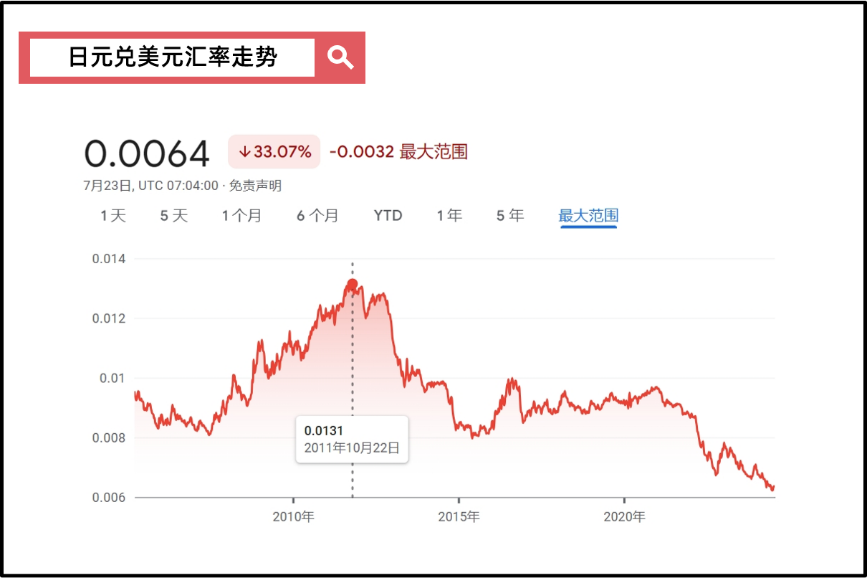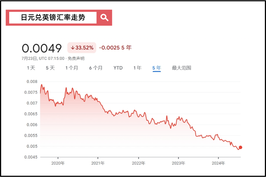 今年,关于日本投资与消费最火的话题就是:日元贬值。 在小红书上,大家热衷于分享去日本旅游买什么,比如LV/Dior/香奈儿等奢侈品,优衣库/Lululemon等服饰用品,Switch游戏机/富士相机等高端电子产品,甚至有人开玩笑说去日本考雅思。 这一切的热闹背后,都归根于日元贬值,同等价值的人民币在日本可以买到的东西比以前更多了。 那么,日元为什么会贬值? 当然不只是因为美国加息。 在全球经济的微妙变迁中,日元贬值的浪潮轻轻拍了拍我们,不仅在金融市场上掀起了波澜,更在我们的日常生活中泛起了涟漪。 每一个满载而归的旅行者,都兴奋地晒着自己的“战利品”,仿佛是这场经济浪潮中最生动的注脚。 日元为什么贬值①:贸易逆差 实际上,日元贬值不是近年来才发生的事。 从2012年安倍经济学(简单理解就是非常大胆地刺激经济)实施以来,日元贬值就一直延续至今。 只是因为从2021年开始,日元兑美元(也包括其他各国货币)的贬值趋势愈发显著,所以才强化了人们的体感 而现在市场预期7月底日本会加息,日元贬值有可能暂告一段落。 ![]() 如上图所示: 从1980年代开始,日元就经历了大幅升值;直到2012年,日元进入了贬值周期。 近三年,日元贬值有多夸张呢? 举个栗子。 在2011年10月22日这一天, 日元兑美元的汇率是0.0131,相当于每100日元可以兑换1.31美元; 而到了2024年7月23日这一天, 日元兑美元的汇率变成了0.0064,相当于每100日元只能兑换0.64美元。 拿这两天的汇率来比较,日元兑美元的汇率贬值了51%。如果人们手中拿着日元,啥也不干,购买力也削减了51%。 ![]() 不仅是美元,日元对全球其他货币也都是相当弱势。 比如,日元兑人民币也下跌了三年。 所以,大家才会觉得到日本旅游、消费比以前便宜多了 小红上最火的话题就是 “有哪些东西在国内买很贵,在日本买却很便宜”。比如,有博主分享,在日本买LV,一个包能省下3000多人民币,相当于免费送了一张往返机票;买优衣库的话,基础款airism国内是149元,在日本折合大概只需要106元。 ![]() 同样的,日元兑英镑也是浩浩荡荡地往下走了三年。 ![]() 日元到底为什么贬值呢? 如果只是讲日元与美元之间巨大的利差鸿沟,就有点陈词滥调了。 人们常说,美元利息高,日元利息低,人们都把钱换成美元了。 但货币因素只是表层因素,关键还是得在贸易里找答案。 2023年度,日本的贸易和服务收支为约6万亿日元的「逆差」。 所谓逆差就是,你买东西花的钱多,卖东西赚的钱少,结果你花的钱比赚的钱多。 四个字解释就是:入不敷出。 日本的钱都花去哪里了呢? 买石油和金属等。 日本是个资源匮乏的小国,对能源和原材料极度依赖进口:比如,他们99%的石油、73.3%的煤炭、99%的铁矿石以及100%的镍、锰、钛等稀有金属都要依靠进口。 但新冠疫情、俄乌冲突等一系列冲突,让这些资源品大幅地涨价。 日本需要大量进口能源和金属,但出口(比如汽车、电子产品等)赚的钱又不够多。 于是,钱包就瘪了,日子过得不是很舒坦。 而且这看起来还是一个长期趋势: 全球贸易摩擦似乎有增无减,日本暂时也缺少强势的出口产品。 所以,只要资金从日本流向海外的结构不改变,即使美日利差逐步缩小,也难以从日元贬值趋势中实现根本性转变。 日元为什么贬值②:美日利差 那么,人们最常说的——美日利差的扩大,实际上是日元加速贬值的催化剂。 你可以想象一下,假如你能够随心所欲地把钱放到美国银行账户或者日本银行账户,那自然是哪里的利率高,你就放哪里。 然后由于国债是不容易违约的,所以人们通常把「10年期国债收益率」视为「无风险利率」。 2024年7月24日,美国10年期国债收益率是4.247;而日本的10年期国债收益率是1.079。掐指一算,这利差就是3.168%。 也就是说,你把钱放在美国银行账户,就能获得比放在日本账户多大概3%的利息。 因此,很多国际投资者都会进行「套息交易」——借入利率比较低的日元,然后投资于利率比较高的美元,从中获得利差收益。 日元为什么贬值③:企业海外投资 那么,很多人就要问了: 既然日本卖东西没以前赚钱了,为什么过去10年日经指数还能走高? 那是因为日本的经济结构发生了改变—— 利润源泉从贸易转向了投资。 日本企业在海外纷纷设立子公司,做出海的生意,体现在数据上的说法就是—— 2023年名义国民总收入(GNI)与名义国内生产总值(GDP)的差额为33万亿日元,比1989年增加了约30万亿日元。GNI与GDP的差额相当于从国外获得的收入与向国外支出的差额。 但问题又来了, 企业海外赚钱≠国内经济好转 日本的海外子公司赚了钱,也不回自己家里投资/消费,家里的经济状况并没好转。 就好像家里有人出去打工了,但这个人在外面赚了钱也没寄回家里,家里该怎么贫穷还是怎么贫穷。 所以现在日本民众也很苦恼—— 企业利润改善了,股票上涨了,但打工还是不赚钱,物价又在持续走高,并没有什么开心的感觉。 日元为什么贬值④:家庭海外投资 不仅是企业积极出海,日本家庭还在积极地向外投资—— 今年1月,日本开始新的NISA制度(个人储蓄账户制度,小额投资可以免税),新的NISA制度取消了免税期限,改为永久免税,还提高了免税额度。 从1-5月累计的各产品构成来看,基于新NISA的个人海外投资的“股票与投资基金持有”以5.1634万亿日元的净买入额占到全体的90%。 日本家庭投资海外的股票/基金,产品管理团队就需