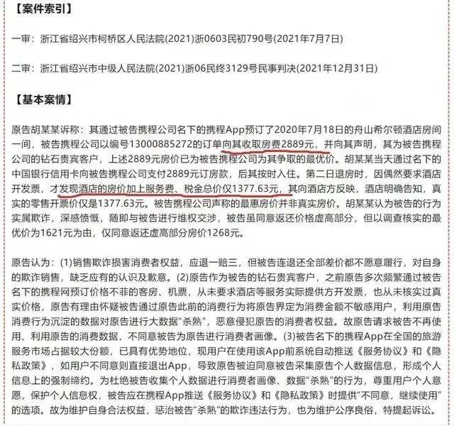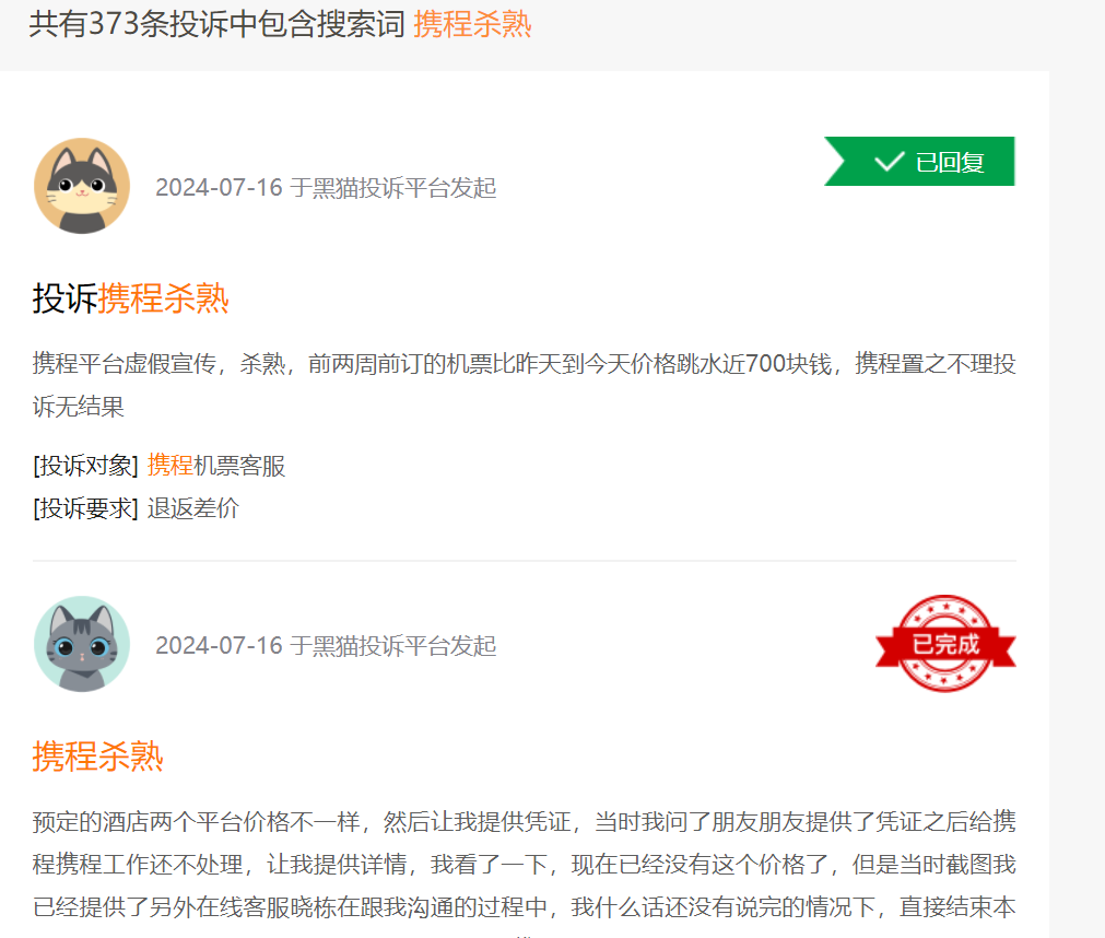@新熵 原创 作者丨樱木 在火爆的旅行市场中,OTA平台头部携程却再次因为“杀熟”登上热搜。 起因源自于,亿欧EqualOcean创始合伙人黄渊普在社交媒体平台发公开信,向携程集团董事局主席梁建章喊话,控诉携程存在大数据“杀熟”问题。 7 月 18 日,黄渊普在携程 App 上预订了从北京飞往阿斯塔纳的机票,页面显示的价格为 3868 元。而正当他准备下单时,携程平台却提示机票“卖完了”,随后刷新出来的价格竟猛增至 4408 元。 而在国航的官方渠道,同一航班的价格为 4328 元,比携程还要便宜 80 元。 为了节省时间和精力,黄渊普最终还是选择在携程以 4408 元的价格订购了机票。但让人意外的是,在他订购完成后,携程 App 上该航班的价格又回落到了 3868 元。 仅仅几分钟时间,价格波动却相差了几百元,难免让人心生疑问。尽管此后携程官方解释道,“国际机票价格浮动属正常情况”,但此事件还是引发了广泛关注,迅速登上微博热搜榜,获得了 45 万的阅读量和 258 条讨论量。 数量庞大的消费者,在社交媒体上发起了对携程的控诉,消费者戏称,这并非“杀熟”,只是携程独家的个性化定制。 调侃之余,似乎表达了对于携程杀熟的无奈。 回顾历史,可以看出,这种无奈却也可以理解,官方记载的携程杀熟案件最早可以追溯到2020年,旅客胡女士通过携程App预订酒店,支付2889元,不过退房时却发现酒店实际挂牌价仅为1377.63元。胡女士认为自己遭遇了“杀熟”,但协商之下,携程表示仅愿意退还部分差价。 随后,胡女士以携程App采集其个人非必要信息,进行大数据“杀熟”为由,起诉携程,要求其“退一赔三”。法院最终认定,携程确实存在虚假宣传、价格欺诈以及欺骗行为,支持胡女士的“退一赔三”诉讼请求,判决携程赔偿胡女士4777.48元。 ![]() 来源:凤羽财经 虽然该案件获奖,但携程杀熟的路径却并没有停止下来,从2020年至今,携程大数据杀熟从公众人物到普通消费者,数目庞杂。在黑猫投诉上,携程杀熟的案例,当下仍旧有数百条之多,案例内容大同小异,价格短期剧烈波动,用户预定完随即恢复低价。 ![]() 来源:黑猫投诉 携程们为何要持续的经营“杀熟”生意,从公开信息显示,原因却不难推测,机票生意本身并不直接带来盈利,甚至一定程度会入不敷出。机票预定在OTA平台中扮演的角色,更多的是流量入口,平台通过机票预定等流量入口业务,向酒店预定、旅行预定等高毛利产品导流,从而完成盈利闭环。 中信证券披露的调研报告显示,机票“提直降代”后,OTA企业的航司佣金率仅为2%左右。如果再加上人力、带宽、算力等成本,运营交通票务业务,OTA企业甚至会亏钱。 但对于OTA平台来说,这仅仅是商业模式初创时的业务逻辑,随着竞争格局逐渐稳定,OTA公司收入构成也逐渐稳定。这种格局似乎正在发生一定程度的变化。 首先,交通票务业务已经成了公司最大的收入来源之一。 根据携程2023年财报显示,2023年携程全年净营业收入445.1亿元,同比增长122%,净利润100亿元,同比增长614%,毛利润363.89亿元,毛利率达82%。2023年,交通票务是携程最大的收入来源,来自交通票务的营收184亿元,占比为41%。 而根据星图金融研究院2021年9月发布的文章,自2015年至2019年,携程交通票务收入呈逐年上升趋势。其中机票方面因国家政策影响,销售利润空间受到压缩;火车票预订方面,携程等在线旅游平台无在线分销权限,只能通过销售附加服务来获取利润;汽车票分销佣金较少,仅0.5%-1%左右;租车服务变现率虽高达15%,但因尚处于起步阶段,占营收比例较小,估算不到5%。 根据以上资料可以推演出,从某种程度上来说,携程营收占比最大的业务,毛利率却相对而言最低。面对如此巨大的蛋糕,携程真的能长期忍受住“诱惑”吗? 而另一方面,取证困难,“代价”微乎其微,似乎是携程们面对杀熟的非议有恃无恐的另一个理由。以2020年胡女士的案件为例,耗费大量资源,起诉打官司,最终仅达成了退一赔三的诉求,时间、精力、金钱,对于消费者而言,似乎并不划算。而胡女士案件是证据链最为简单清楚的酒店预定,回归到机票预定,正如此次亿欧创始人黄渊普一样,公开谴责容易,但诉至法律却很难取证。 其实,从更大的角度来看,公共人物如黄渊普、马天宇、韩雪等多次在社交媒体平台公开批评携程。但收到的效果,甚至千篇一律的都是价格波动。但正如消费者所言,既然价格波动总是出现,为何还要故意标出低价吸引流量呢? 其实,在后疫情时代,随着旅游的开放,以及出境游的火热,携程已然快速恢复,从2024年年初以来,携程集团在半年内股价上涨接近50%,涨幅也位列众大厂之首。有媒体用半年涨了1000亿,市值超过百度来形容携程2024年的复苏。 而携程在出境游、国际化方面,更是早早布局,2020年,携程仍用1亿欧元逆势收购了欧洲在线旅游公司Travix。2022年末,携程海外业务开始回血;出境机票和酒店预订量在第4季度分别增长了200%和140%,携程亦在此期间实现了扭亏转盈,并净赚14亿。2023年第三季度,携程国际OTA平台的总预订较2019年同期水平已增长超100%,对集团的贡献也占到了携程整体海外业务的一半。在财报电话会上,携程管理层表示,集团的入境旅游预订量同比增长超4倍。其中,来自新加坡的入境游客人数增长了10倍,马来西亚增长了9倍,法国、西班牙和泰国均有4倍增长。 而随着携程的进一步扩张,已经对出境游话语权的不断扩张,从某