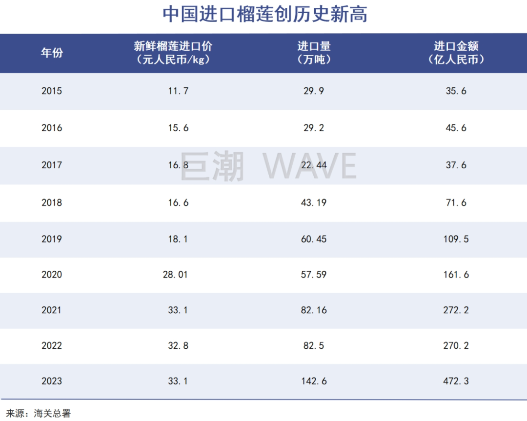 文 | 谢泽锋 “投之以榴莲,报之以财富。”600年前,郑和下南洋时,其副官在《瀛涯胜览》中就对榴莲有这样的记载:番名“赌尔焉“(带刺的果子),闻起来“若臭牛肉之臭”,但吃起来“甚甜美好”。可以看出,中国人对榴莲口味的认可已经从明朝延续至今。 放眼全球,榴莲也堪称是中国人的“独爱”。据统计,我国每年要吃掉全球90%以上的榴莲。2019年时,鲜食榴莲就已经超越车厘子,成为中国“进口水果之王”。到2023年,进口榴莲规模和金额额均大幅增长,且创历史新高。 榴莲已经成为中国和东南亚各国经贸往来中的战略级产品。越南、泰国、马来西亚等国领导人来华时,更是不遗余力地推介本国的榴莲品种,试图建立“榴莲外交”。 经济价值高,采购量大,中国市场巨大的需求甚至改变了东南亚的农业种植习惯,许多国家正在将大量稻田改为榴莲种植园。 东南亚国家经济基础薄弱,水果是非常重要的产出品,在和中国经济贸易往来时,我国向东盟出口机电、汽车、设备等工业品,东盟则是以榴莲为“顶流单品”进行交换。 可以说,榴莲对于东南亚诸国的重要性,超过了国内很多人的想象。 01、水果之王 自带“开盲盒”属性。 闻起来有一股浓烈刺鼻的气味,吃起来又是一种软糯绵密的感觉。对于喜欢吃榴莲的人来说,这让他们爱不释手,甚至上瘾。 榴莲富含多种营养成分,包括糖、淀粉、蛋白质、维生素、脂肪、铁离子和钙离子等,食用价值非常高。 由于形态各异,一些特殊的榴莲甚至卖出天价。2019年,在泰国暖武里府,一颗kanyao榴莲以150万泰铢(33.2万元)的价格卖给了当地一位富商。这种榴莲最便宜的也要2万泰铢(4000多元)。 稀有的马来西亚黑刺榴莲、猫山王榴莲同样十分昂贵。电商平台上,这两种榴莲价格也最高,一斤价格在100-200元左右。 ![]() 来源:京东 榴莲是一种舶来品,传入中国的确切历史难以考证,但有文字的记载源于郑和下西洋。600多年前,郑和船队在东南亚发现一种名为“赌尔焉“的果子,带刺的独特外观让人好奇。航行中食物稀缺时,榴莲的香浓甜郁让船员们惊喜,甚至暂时忘却思乡之情。 传言,郑和可能正是因此将其称为“流连”,后演变为“榴莲”。 如今,榴莲已经成为我国进口量最多的水果。汇丰银行在2023年的报告中指出,中国市场消耗了全球榴莲的91%;今年,联合国粮农组织的数据显示,中国将占全球榴莲消费总量的95%。 也就是说,中国几乎是榴莲的唯一市场。2023年我国进口新鲜榴莲超过142万吨,同比大增72.85%,进口额472亿元,同比增长74.8%,均创历史新高。 榴莲还自带“开盲盒”属性,由于外形、体格、重量相似的榴莲,其果肉数量的多寡、口感却差别极大。开榴莲的过程充满了未知感和神秘感,甚至引发了网友的跟风效仿。 到底自己买的是懂事的“报恩榴莲”,还是来报仇的“榴莲糖”,主打一个惊险又刺激。某短视频平台直播开榴莲的视频居然曾经有630万人围观的情况,很多人在挑选榴莲时会在线求帮助。随着网络的发酵,榴莲话题频频冲上热搜,原本不吃榴莲的人也会被挑起兴趣。 ![]() 随着在短视频平台上的走红,榴莲也从一种高价水果变为“顶流网红”,成了给日常生活增加乐趣的“盲盒玩具”,销量随之进一步走高。 02、榴莲大战 “榴莲大战”会更加火爆。 7月16日开始,宏辉果蔬迎来三连板。作为二级市场较为冷门的行业,这样的涨幅并不多见。 起因是6月19日,我国与马来西亚签署协议,马来西亚鲜食榴莲获准进入中国市场。2023年下半年,宏辉果蔬就决定在马来西亚彭亨州投建榴莲基地,总投资2.8亿元,目前已投资7700万元,主要品种为猫山王。遇到利好消息,公司股价被资本热炒。 有数据显示,中国14亿人口中,尝过榴莲的人群至今仅占不到1%,市场潜力可见一斑。庞大的人口基数打底,市场空间哪怕增加1%,都意味着巨大的商业机遇。 ![]() 得益于良好的土壤、气候、地理和水资源禀赋,东南亚种植业十分发达,是榴莲种植最适合的区域,东南亚也成为我国最重要的进口基地。 早在2003年,泰国率先获得中国海关总署批准,可以向中国直接出口新鲜榴莲。2022年开始,越南、菲律宾、马来西亚先后拿到批条。基于先发优势,泰国一直在榴莲对华贸易中占据优势。 2023年我国进口的142万吨榴莲中,65%来自泰国,35%来自越南,菲律宾榴莲占比不到1%。去年,泰国对华榴莲出口额上升至37.5亿美元,这一数字在2012年仅仅是1.28亿美元,相当于十年飙升28倍。 由于经济价值远高于橡胶、水稻等,出口大增的背景下,榴莲热带动东南亚出现一批富翁。在东南亚国家看来,榴莲更像是黄橙橙的金子,许多人直接把稻田改成了榴莲园。 在拿到鲜食榴莲进口批条的第二天,大马农业和粮食安全部长萨布在一场活动上,向全国6.3万名榴莲种植者喊话:现在就要为出口中国做好准备,开始扩大种植规模,以便在未来5-6年大规模向中国出口。 因为,榴莲树种植后需要5-10年才能结果,而猫山王和黑刺榴莲被誉为马来西亚的“榴莲双壁”,被榴莲爱好者视为终极品鉴的品种。 2017年至2023年,马来西亚共出口了51.7亿林吉特(约79.6亿元)的榴莲,其中73%销往中国,可以预见,该国将掀起种植榴莲的热浪。 越南也是摩拳擦掌。随着两国经贸关系改善,越南改变了泰国一家独大的局面。今年一季度,中国从越南进口鲜榴莲3.5万吨,价值12.8亿元,增长迅猛,出口量更是一度反超泰国。 越南在“榴莲