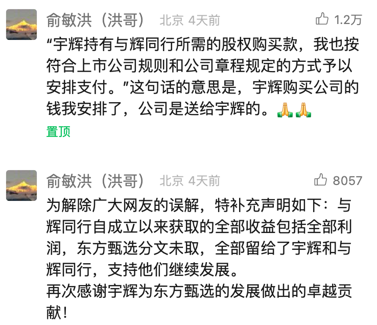 作者:李梦冉 出品:零售商业财经 一则由东方甄选7月25日在港交所发布的“董宇辉离职”公告,让东方甄选、与辉同行、俞敏洪、董宇辉之间的“爱恨情仇”再一次成为当下热点。 按照公开的说法,目前,董宇辉除了已到账的1.41亿元分成和未到账的1.41亿元净利润外,俞敏洪还自掏腰包7658.55万元,将与辉同行“送”给董宇辉,董宇辉累计将入账超3.58亿元,还不包括其个人在东方甄选的薪酬以及公司授予的股权所得。 ![]() 图源:港交所 这份赠袍赐马、颇有孟德之风的豪气与当初俞敏洪投资李斌时“我投了这个钱,你要不让我赚钱的话,能把你给弄死啊”的戏谑大相径庭。 当然,面对“董宇辉和与辉同行脱离东方甄选独立”一事,俞敏洪至少向外界释放了两点明确信号:一是东方甄选不会再出现某个主播成立独立平台,强调旗下主播祸福同当、荣辱与共;二是基于价值观与内容模式的延续性,东方甄选在网红模式与产品路线之间押注后者,未来将在产品侧对标山姆会员店,并依托新东方约800个教学点,探索出OMO模式下的东方甄选会员体验店。 另一边由董宇辉百分百掌权的“与辉同行”,虽然表面上脱离了东方甄选的掌控,但从一些细节(董宇辉称:俞老师还免费支持了我们运营系统)中不难窥见两者的“藕断丝连”,更不用提,与辉同行的政府资源、供应商和客户资源,大部分还在东方甄选手里。 这也难怪业内人士会对这场看似和谐、体面的聚散戏码提出质疑。 “俞敏洪与董宇辉是否涉及上市公司利益输送和内幕交易?”钛媒体创始人赵何娟犀利指出:董宇辉离职本质上是一起典型的MBO(管理层收购)交易,其中可能存在信息披露不完整、收购资金来源不合法、定价机制不公平合理,以及严重利益冲突等多个公司治理结构缺陷问题。 ![]() 图源:老俞闲话公众号 「零售商业财经」认为,从上市公司治理延伸至后续经营管理层面,“分家”某种程度上分散了超头主播与MCN机构深度绑定的发展风险,但独立后的两者亦不排除未来合作、深度利益绑定的可能性。 换言之,想要达成俞敏洪口中“东方甄选和与辉同行友好竞争,甚至是互相加持的竞争”的希冀,改变东方甄选涨粉速度、销售数据均不及与辉同行的局面,帮助与辉同行快速解决品控、供应链实力不足等系列问题,最直接的途径是放大长板:即一个加码前端销售,维持网红模式下的流量“长红”;一个侧重后端供应,基于“产品至上”理念探索商业模式创新。 1、俞辉“割席”还是“秘密同行”? 俞敏洪、董宇辉“割席”最直观的导火索是去年12月的“小作文”风波。彼时,东方甄选CEO孙东旭出局,俞敏洪选择保住头部主播,并为董宇辉单独成立“与辉同行”。 董宇辉所展现的商业价值、“造金”能力毋庸置疑,这也难怪风波期间高途“挖角”“刘强东与董宇辉进行了秘密会谈,希望董宇辉能加入京东”等传闻甚嚣尘上。 爱才之心人皆有之,何况驰骋沙场多年的俞敏洪,董宇辉对俞敏洪、东方甄选及其大小股东的重要性同样不言而喻。 那么,面对东方甄选的业绩保障和外部对家的虎视眈眈,俞敏洪会轻易放开董宇辉的手吗?亦或者,董宇辉能逃出俞敏洪的手掌心吗? 在个人关系层面,曾经“大碗喝酒、大块吃肉、引吭高歌”、甚至亲如父子的师徒,如今斩断利益纠葛,很难让人信服。即便在董宇辉“离职”后,俞敏洪也公开表示,“不会影响自己和董宇辉的私人关系”。 在新公司选址、经营层面,剥离后的与辉同行新办公区距离新东方仅209米,与其说割席,倒不如说俞辉已开始“秘密同行”。再者,从电话会议等公开信息来看,俞敏洪或许并未与董宇辉签署任何限制竞争协议。 ![]() 图源:与辉同行 东方甄选能不忌惮独立发展的“董宇辉IP”吗?答案显而易见。 仅从“离职”公告后的(第三方)数据来看,自25日-29日,与辉同行共涨粉60万,日均涨粉12万,粉丝总量已超2200万。尽管董宇辉自公告后未上播带货,但销售数据依然亮眼。第三方数据平台显示,公告后5日总GMV已超过1亿元,26日销售额超过5000万元,剩余几日销售额也均稳定在1000万以上。 综上,董宇辉的“离职”戏码,更像是深度利益绑定下的表面割席,或许双方根本就没想过正面竞争。 而俞敏洪和董宇辉上演的这场“假分手”,也有迹可循。“去头部化”已是直播带货行业的主旋律,当MCN机构或品牌培养出“专属”头部大主播后,看似是得到GMV的保障,实则加重了企业风险成本。 曾经红极一时的李子柒和杭州微念的“双输”便是前车之鉴。显然,惺惺相惜的俞敏洪和董宇辉不愿走到这一步。 于俞敏洪而言,他深知东方甄选不会再有下一个董宇辉,也不会再扶持一个“董宇辉”,增加不确定因素;于董宇辉而言,在这个遍地是金子的网络时代,俞敏洪是自己的第一个贵人,“脱离”俞敏洪百害而无一利。 「零售商业财经」认为,东方甄选和与辉同行“分家”实则隐藏着更深层次、更隐秘、不为人知的野心,不仅不会成为外界所想相互厮杀的竞争对手,相反,他们更倾向于“多个朋友”。 2、离职疑云是否是上市套路重演? 今年1月,与辉同行在抖音平台首次直播便狂揽1.5亿销售额,最高在线人数达到170万,创下开播奇迹。达多多数据显示,与辉同行最近一个月的涨粉数是东方甄选掉粉数的5倍。今年以来,在抖音带货榜上,与辉同行持续领先东方甄选。 截至2024年7月30日18时,东方甄选主账号在抖音的