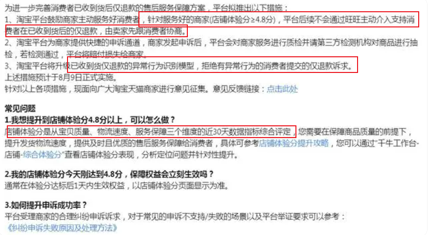 仅退款,在商业原理上是好的,在社会学层面也是有积极价值的。对此倪叔没有异议。 但有一个前提:必须在有证据表明商家存在劣质主观恶意的前提下,仅退款才是一种有效的改善营商环境的手段。(目前不合理的仅退款主要集中于少数零食、生鲜行业。) ![]() 否则,仅退款将成为边界无限扩大的误伤,变成对于所有行业、所有商家无差别惩罚、无差别“讨好”消费者的“恶意政策”。并且,它是在“慷他人之慨”:用商家的损失来博取消费者对平台的好感。 这显然是一种短视行为。 1、向“不合理的仅退款”说不 近日淘宝上新体验分体系,其中最核心的一个变化就是:对有能力服务好消费者的商家,减少平台干预,让商家与消费者在售后场景更充分地协商解决,用商家“体验分”系统替代行业通行的简单粗暴介入强行仅退款。说得再直白一点就是率先对不合理的仅退款规则说不。 ![]() 先说点大背景:在努力回归“消费者体验”的行业背景下,今年618各大平台使出浑身解数去“讨好”“迎合”“倾向”消费者,不管大家认不认同,这也是某种“趋势”、更是事实。但我们如果从长期均衡可持续发展的视角去思考一下就知道这样的心态无异于“饮鸩止渴”。 真正的消费者体验并不是说——“物质极大丰富,大家为所欲为”,也不是正义女神像背后的箴言“为了正义,哪怕天崩地裂”……那反而是对消费者的不负责,用看似很爽的方式无下限地偏倚任何一方都是不对的,因为商业是一个由多方组成的生态,而不是一将功成万骨枯。 理想的状态是让这个生态里的各方都获得持续提升的体验,这个体验是综合的,不应当仅仅是“价格”。更何况,这个所谓的低价或者仅退款服务,还是将幸福建立在他人的痛苦之上,这更不对了。 其实很多优质商家苦仅退款久矣,一刀切的仅退款就是阻碍优质商家继续增长的一个负面要素。原因有三: 第一、从利益角度,牺牲商家利益。 第二、从情绪角度,伤害商家经营积极性。 第三、从长远角度,劣币驱逐良币,拉低经营底线。 此处无需赘述,大家其实都明白。但人性有时候就是这样:明知道是错的,但只要看上去对我有利,那我就不管……消费者有权利这样做,但作为平台,是不能这样做的——平台不只有商业价值,还有社会责任,以及维护整个行业良性发展的平台担当。 所以淘宝此番将体验变革对准仅退款可谓打在了优质商家的痛点上。理由亦如上,一一对应,不合理的仅退款规则被改善之后,商家的利益、情绪、长远价值都将逐步回归。 2、好服务对应好增长,口碑就是最好的营商环境 展开说说,改变规则之后,体验如何? 表面看,淘宝的新体验体系是在向商家倾斜,实际是均衡之策,核心目的只有一个:回归“体验为王”的营商环境,让优质商家与真实的消费者体验重新回到生态式的有机结合状态。 ![]() 何谓生态式有机结合呢? 第一、一系列的体验焕新,正向激励商家将注意力放在经营层面而非“无底线讨好甚至忽悠消费者”,让服务成为经营的重要参数而非唯一参数。 其实早在今年1月召开的2024年商家服务大会上,淘宝天猫就明确要升级全新的店铺综合体验评分标准,说白了就是为优质商家提供多种流量和权益扶持,要将体验的“根儿”拉回到商家经营层面,而不是一味地放在“大家都拼低价”“都给我使劲儿哄消费者”这个“表象”。 ![]() 商业的健康繁荣,取决于什么?我们总误认为取决于消费者,所以说起来都是“刺激消费”,可实际上取决于商家的高质量经营,取决于对商家更友好的平台营商环境,只有商家经营得法,消费自然变好,消费者用脚投票的那个“脚”,其实是建立在诚信基础上的“安全感”,而不只是“一块钱买不了吃亏”的“沉没成本低”,一味追求价格敏感绝对不是一种健康的商业状态。 第二、高质量的消费者人群,能够得到关于商家的真实口碑评价,实现消费与服务价值的真实连接,好口碑与好生意正向循环。 据悉,此番淘宝全面落地新评分体系,比如“店铺体验分”、“商品体验分”等,体验分也全面应用到了手淘搜索、猜你喜欢、阿里妈妈营销、活动报名等等店铺经营场景之下,这样做的目的就是要让体验分(口碑)与商家的经营(生意增长)直接挂钩,体验分越高,商家店铺、商品就能获得更多的流量。 经营即流量,以此替代“仅退款即流量”“低价即流量”。因为很多商家其实陷入了一个行业性的误区,一提服务就想到“低价”“仅退款”,总之就是无底线讨好消费者甚至哄骗消费者,而淘宝的这套体验分体系把那种“惩罚商家”的负向机制扭转过来了,变成了“奖励商家”的正向机制。 正向激励永远比负向惩罚更有利于一个长期健康商业生态的持续增长,这是简单的常识。 第三、更宽松自由的营商环境,让市场来决定生意增长而不是平台“拉偏架”,创新价值将在淘宝重新成为生态体系的核心要素,长期来看对商家与消费者以及平台都有好处。 ![]() 有人说,当下电商行业已经处于日常价格战、天天过年大促,所以流量被摊薄了,大家对价格与大促都审美疲劳了。所以电商增长不像从前那么具有爆发性了。 这种说法有道理。但它只是表面现象,实际上电商行业的增长不是一个孤立的现象,而是要放在整个经济发展大周期之下来考量。很显然,现在价格战不只是电商一个行业,而是几乎所有消费领域都在价格战,比