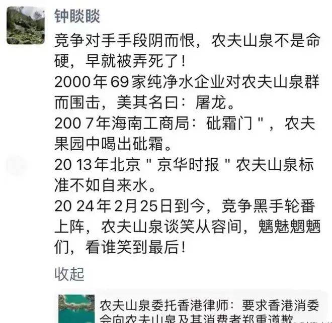作者|陈 杰 体育营销,乃包装饮用水的必争之地。 巨大的赛事流量,和作为运动员饮用水的超高安全度,双重加持让品牌名利双收。 今年奥运,为保证中国国家队的饮用水安全,怡宝赞助了4万多瓶水和饮料,漂洋过海送至中国国家队训练营、保障营以及“中国之家”。 作为“中国国家队官方饮用水”,怡宝已是国家队多年的合作伙伴。据悉,华润怡宝自2014年起就确定了体育营销战略,据不完全统计,十年来怡宝已赞助了各种马拉松和路跑赛事总计超过 1300 场。 市面上瓶装水的味道差异度并不明显,细分赛道很难深耕,从“官方”及“体育赛事”入手为品牌赋能,怡宝无疑是深谙“国民之道”。 经过多年经营,“怡宝”母公司华润饮料(控股)有限公司终于踏上上市之路。7月16日,随着证监会关于华润饮料境外发行上市备案通知书的发布,意味着华润的港股上市进程又进一步。 但随之而来的,是一场酝酿已久的瓶装水战争的又一次爆发。 就在今年4月,华润饮料正式向港交所披露招股书时,老对手农夫山泉迅速出手,推出“小绿瓶”纯净水,零售价2元/瓶,正式向怡宝占据的纯净水市场宣战,甚至连包装都选了同款绿色。 今夏,水战再起。 钟睒睒曾在今年2月,将农夫山泉遭遇的低迷都归咎于“竞争黑手”,怒发朋友圈,“竞争黑手轮番上阵,农夫山泉谈笑从容间,魑魅魍魉们,看谁笑到最后!”。 ![]() 中国黄金集团首席经济学家万喆曾表示,“金融市场也是舆论战场”。网络舆论也是民意的“自由市场”,市场与舆论都瞬息万变,这让巨头也不能永远高枕无忧。 谁能笑到最后,也许不到最后,都是个未知数。 01、民之刚需,造就多位中国首富 饮用水是民之刚需,是即饮市场规模最大的品类。 根据灼识咨询报告,2023年按零售额计的中国即饮软饮市场规模达9092亿元。其中包装饮用水是最大的品类,2023年规模已达到2150亿元,预计2028年零售额将达到3143亿元。 这个价格只在几块钱区间内的日常商品,却造就了多位中国首富。 娃哈哈创始人宗庆后先后在2010年、2012年、2013年三登中国首富。农夫山泉创始人钟睒睒自2021年到目前为止已连续四年蝉联中国首富。2020年9月,农夫山泉成功登陆港交所,钟睒睒甚至凭借578亿美元的身家一度超越BAT 巨头马化腾、马云等,2015年钟睒睒登上福布斯华人富豪榜第18名的时候资产还是103亿美元,短短5年已翻至五倍之多。 ![]() 相比而言,怡宝的初代操盘手、被业内誉为“中国包装水之父”的周敬良,显得低调许多。但其实,早在2004年周敬良也以120亿元的身价,登上2023年胡润全球富豪榜。 如此庞大的市场,引得竞争者不断涌现、厮杀。多年来形成农夫山泉、怡宝和娃哈哈“三足鼎立”的市场格局。 按招股书信息显示,农夫山泉、怡宝分别位列2023年中国包装饮用水市场第一名和第二名,娃哈哈居至第四位。而在纯净水市场,怡宝和娃哈哈占据前两名。 饮用纯净水是包装饮用水市场中规模最大的细分市场,2023年饮用纯净水市场规模在包装饮用水中占比为56.09%。同时根据灼识咨询报告,预计2023年至2028年的复合年增长率加速至8.3%,即是所有即饮软饮品类中增长最快的品类,且增速将高于天然矿泉水。 “怡宝”纯净水就以一己之力撑起了华润九成江山。据其招股书显示,华润饮料2021年至2023年实现收入分别为113.40亿元、126.23亿元及135.15亿元,净利润分为别8.58亿元、9.88亿元及13.31亿元,其中2023年包装饮用水卖出146亿瓶,并连续三年贡献超九成收入,而其余饮料的营收总和占比不超过一成。 如此巨大的商业潜力让昔日高调宣布与纯净水对立的农夫山泉,又扭过头来重新加入纯净水市场竞争。 农夫山泉在推出“怡宝同款”纯净水的同时,还掀起了一场瓶装水价格战。“绿瓶的农夫山泉上架后,一直以来都在做促销。” ![]() 淘宝、抖音等线上平台,农夫山泉官方旗舰店12瓶装的绿瓶纯净水,价格多为降至9.9元/提,平均每瓶0.825元。而进货渠道甚至低到0.67元/瓶,据搜狐财经报道,一位山西的市场流通专员透露,就绿瓶纯净水而言,农夫山泉给经销商的优惠政策是“买100箱,送25箱”,进货价是12瓶8元,相当于1瓶6毛7。 中国食品产业分析师朱丹蓬表示,今年来农夫山泉上市纯净水产品并上线低价策略,已成为纯净水市场的“搅局者”。 大渔策划创始人张超指出,农夫山泉是用“田忌赛马”的策略,来攻打“2元水市场”。其推出的绿瓶纯净水,作为“下等马”,以低价策略迅猛切入,迅速在市场中占据了一席之地。相比之下,对于怡宝等品牌而言,其销量支柱——纯净水,则扮演着“上等马”的角色。 他认为,农夫山泉的绿瓶纯净水通过低价迅速占领市场,如果娃哈哈、怡宝等品牌跟进的话,利润会大幅萎缩。如果不跟进,市场规模则会被逐渐侵蚀。用下马来对战上马,价格战持续两年,其他企业可能因难以承受价格压力而面临困境。 农夫山泉这一举措是不求利润,只求市场规模。 02、各家纷纷被迫迎战 正如张超预计的,竞争壁垒并不高的饮用水市场,让其他几家品牌只能被迫迎战,纷纷下调价格促销。 550毫升左右的12瓶包装水,娃哈哈、怡宝、景田等多在线上电商、买菜、外卖等平台下调至9.9元。9.9元12瓶基本是包装饮用水的常规最低促销价格,如果消费者叠加优惠券等价格还会更低。 诚然,农夫山泉渠道布控能力很强,绿瓶水一经上市销售量就很可观,但是这种杀敌一千、自损八百