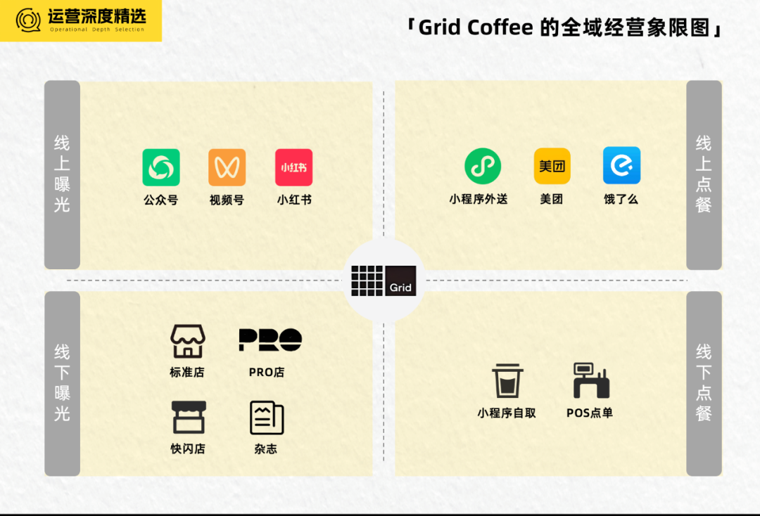 撰文丨少波 不知不觉,全域研究专题已经来到了第11期,这次运营深度精选将目光聚焦在了一家从「卷生卷死」的咖啡赛道中跑出来的黑马品牌身上——Grid Coffee。 在平价咖啡成为风潮的当下,这家两年前从北京起家、客单价在30元左右的咖啡店,还能迅速跑出来爆火的口碑和销量,背后的经营逻辑非常值得进一步拆解: 不打价格、不卖拼配、只做经典,Grid Coffee 凭什么能逆势经营,成为咖啡星人的心头好? 同时,在国内外众多精品咖啡中,Grid Coffee 凭什么刚出道就能被 Gucci 选中,成为主动联名的对象? 另外,可以查查它的母公司,你会更加惊诧的。 以上关于 Grid Coffee 的疑惑,我们将从全域视角出发,借助「内容-社交-商业化」模型,探讨 Grid Coffee 的经营之道,一起来看这家黑马品牌,是如何探索出一条属于当下精品咖啡逆势突围之路的。 1、国产咖啡新「黑马」的诞生 2、内容:围绕产地一以贯之 3、社交:成为体面的社交话题 4、商业化:不派券反而量价齐升 01.、国产咖啡新「黑马」的诞生 从卖黑咖的街边小车起步 2022年8月,在北京三里屯,Grid Coffee 从一辆只卖黑咖的街边小车起步,品牌的故事由此开始。 ![]() 两年时间,这家咖啡界的新星以北京为据点,陆续开进了苏州、成都、重庆等城市。上个周末,也就是7月28日,Grid Coffee 最新的一家门店,深圳大运天地店作为 Grid Coffee 华南首店正式开业。 在大众点评、小红书和微博等平台上,用户对品牌的讨论度非常高,并且好评满满。官方的公众号留言区中,上海、广州、杭州等多地用户都在喊话,让 Grid Coffee 开来自己的城市。 截至目前,Grid Coffee 全国共有正式门店47家。今年后半年,Grid Coffee 依旧会在新的一线和新一线城市开出首店,预计到今年年底,全国开店数将达到 80-100家。 Grid Coffee 全域经营象限图 在初步了解了 Grid Coffee 的背景信息之上,我们再来看全域经营象限图。 ![]() 若你看过其线上曝光渠道的内容,就会有很明显的感受——Grid Coffee 并不是把新媒体定位为流量渠道,而是作为表达品牌自身的重要渠道之一。 同时,其社交账号的运营风格也习惯使用对仗工整的短句,而非采用卖萌、自黑、抽奖等「低姿态」方式来吸引关注,这种秩序、克制和距离感的品牌印象,也让它在精品咖啡市场中独树一帜。 线下曝光渠道,则是通过不同形态的门店及实体刊物吸引客人。常规的标准门店对标产品是那些你路过值得喝一杯的精品咖啡;Pro 门店则是对标那些你值得专程前往去喝的精品咖啡;而快闪店则作为品牌的「先行官」,出现在探索某个新的城市或联名活动中。 在点单交易渠道,小程序作为重要载体,既提供外送服务,也可以在门店自行下单,通常作为餐饮行业的标配基建出现。此外,常规标配还有线上渠道的外卖平台,以及线下门店 POS 点单。 Grid Coffee 内容-社交-商业化模型 继续搬出「内容-社交-商业化」经营模型来看,这套模型对于生意口碑、业绩的提升是否真正有效,最简单的评估的标准就是品牌在每个环节的动作,能否真正带动用户进入到下一个环节,最终形成闭环的增长飞轮。 ![]() 以 Grid Coffee 为例,三个环节已形成正向循环:内容——调动用户情绪,产生社交行为 ➡️ 社交——社交落在产品,激发消费行为 ➡️ 商业化——商业化上的成功,反哺优质内容产出 ➡️ 内容。 下面我们就将以此图展开,进入到关键的拆解部分,分别从内容、社交、商业化三个环节,来看 Grid Coffee 的这套模型具体是如何运转,以致于能够带动品牌成为咖啡届的黑马: 02.内容:围绕产地一以贯之 Slogan 要谈 Grid Coffee 在内容上做的动作,离不开一个核心内容源,即品牌 slogan ——「全系单一产地咖啡」。 ![]() 相比于「单一产地咖啡」这个专业术语,大众更熟悉的可能是它的缩写词 SOE,与拼配豆相对。Grid Coffee 将品牌定位「全系单一产地咖啡」,是国内首创,并且也是国内首个真正实现。 而 Grid Coffee 源源不断、各种形态的内容也正由此展开: 「产地」是我们在谈论「单一产地咖啡」时绕不开的一个词。背后意味着你所喝到的这杯咖啡,它更容易追溯到一个特定的地区、农场、生产者或土地。除了能够满足越来越多的消费者关心的可追溯性和透明度外,通常其具有更独特的风味特征,并且更能表达种植地区的风土。 你看这内容不就来了,Grid Coffee 就是利用这句 slogan ,让客人喝到各个产地最醇正咖啡口感的同时,进一步顺着原产地的风貌来做内容,让客人身临其境地感受到各个产地的咖啡文化。 ![]() 那问题又来了,既然「单一产地咖啡」占尽优势,为何别家不先抢占风口?核心原因就是季节性的影响。 大多数烘焙商购买的单一产地的咖啡只能供应几个月,这意味着,如果你非常喜欢一支豆子,也要看它当年产季的产量,在市场需求量大的情况下,很快就会断货。这也意味着你必须不断地尝试去接受一支新豆,对于咖啡师来说,需要制定新的萃取参数,以适应不同的咖啡豆。这对深陷于拼价格的咖啡店来说,显然不划算。 对于 Grid Coffee 来说,这既是挑战,也是机会。他们选择了以「产地季」去做内容+产品。因此其每年都会在不同季节,深入全世界最好的咖啡产地,寻找源头优质咖啡豆,开启产地营销季。如目前已经走过了埃塞俄比亚季、云南产地季,当前正在进行的是肯尼亚季。 值得一提的是,传统的品牌营销有时候暗含一种对比关系,但 Grid Coffee 认为如今