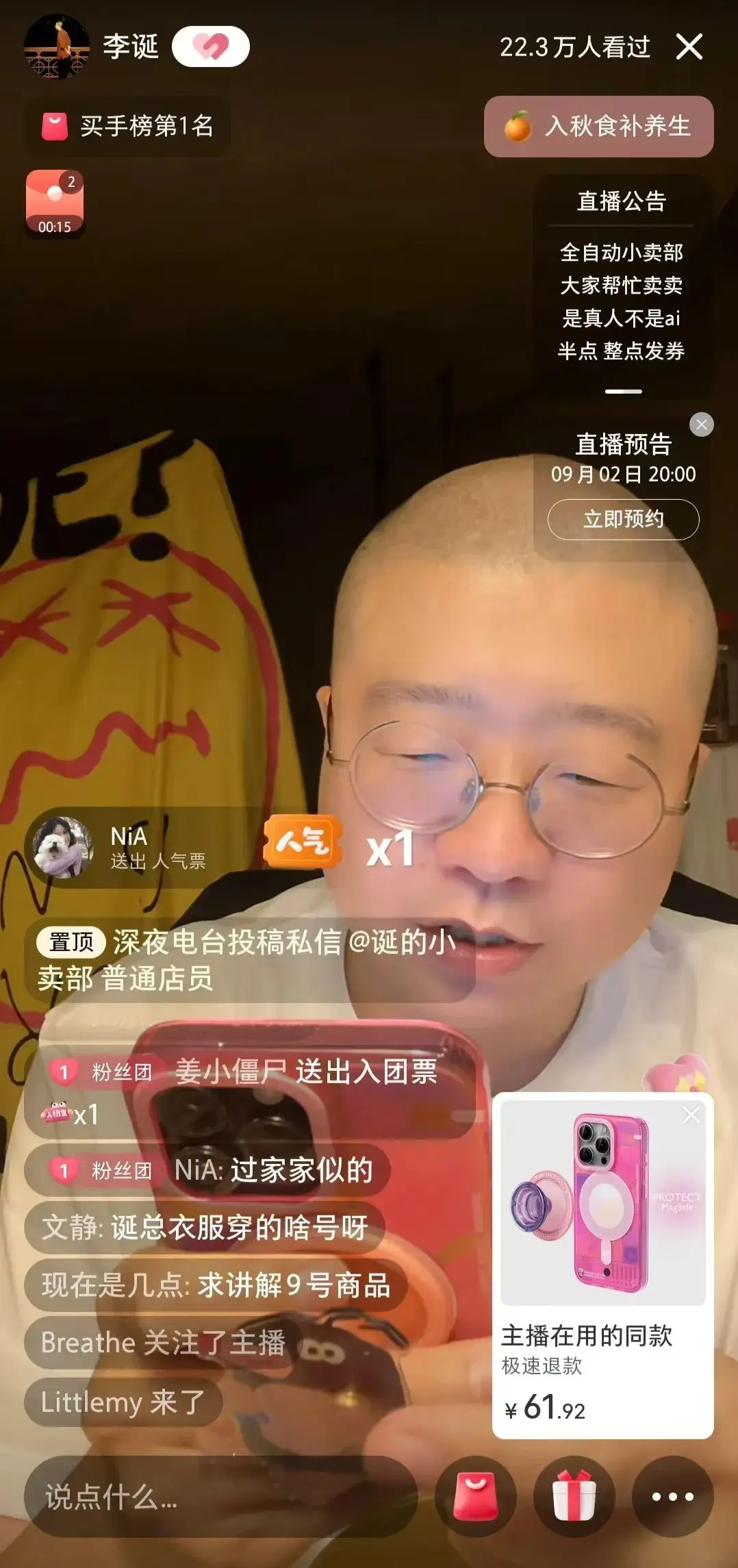 缺席脱口秀节目的李诞,悄悄成为了小红书带货一哥。 “只要李诞开播,几乎都能登上小红书买手榜的第一名,且榜单指数远超第二名”,一位经常看李诞直播的用户说。 ![]() 与其说是带货,李诞的直播间更像是“情感电台”:粉丝可以投稿给小卖部,倾诉他们在生活和工作中的困扰,李诞在直播间的主要任务就是读信并给出建议,并不对商品做过多讲解。直播间右上方的公告里也写着:“全自动小卖部,大家帮忙卖卖”。 在直播间,你能听到各种drama的故事。“大四女生同时谈了三个男朋友”“有两个男朋友不知道选谁,所以选老三”“和老公朋友保持关系半年,他想让我离婚但是我嫌麻烦”。而这些热门投稿切片更是成为了平台上的热门内容,李诞大有成为超头部带货主播之势。 “逃得过李佳琦,躲得掉董宇辉,却没躲过李诞”,一位用户说。与李佳琦的女生,董宇辉的丈母娘相同,李诞直播间的主要群体同样是女性用户。 新红数据显示,李诞粉丝中女性占比高达88.54%,主要分布在二线城市及以上城市。 但事实上,与李佳琦、董宇辉等主播单场直播GMV动辄过亿的销售实绩相比,李诞的直播间看上去只是虚火。 DT研究院发布的7月小红书直播带货明星榜显示,李诞排名是第5,前4名分别是董洁、吴昕、伊能静、宋妍霏,李诞在总榜中排名28,预估销售额为680万+。 这一销售实绩似乎与带货一哥的名头不太相符。而产生这一差距,除了李诞直播间刚刚起步的因素外,更重要的原因是李诞直播间售卖的商品品类和用户群体。 小红书直播热榜榜单是根据直播间成交金额、成交件数、观众停留时长、直播间互动率等因素排名。李诞直播间的显著特点就是,成交件数、停留时长、互动率高,但客单价较低。 上述DT报告提及,7月,董洁、吴昕直播间客单价分别为340+、310+,而李诞直播间为80+,尽管其销量超过吴昕,但销售总额只有吴昕直播间的1/3。 当然,近期李诞直播间正处于流量上升期。8月的8场直播,其直播间GMV处于爬坡阶段。新红数据显示,8月5日,其直播间GMV为10.44万元,而8月29日,直播间GMV已攀升至243.68万元。 李诞已经靠情感直播蹚出了一条直播带货的路,给姐妹们提建议的风格也让他获得了诸多好感,但距离真正的带货一哥,李诞还有不少台阶要爬。 01 李诞直播间的女性用户占比为何能高达8成?原因是他的直播内容同时满足了女性八卦、共情和陪伴的多重情感需求。 其他情感类主播在给建议的同时,必然夹带“教你做事”和“好为人师”。但在李诞的直播间,网友更像听了场两性话题脱口秀,李诞以男性视角输出观点,但插科打诨的说话和表演方式又毫无“爹味”。 读到一封剧情抓马的来信,李诞可以先“哈哈哈”个半分钟,那种状态像极了跟你分享八卦的闺蜜。然后随手拿起一根牛肉棒,摆出抽烟状,读一句,抽一口,笑一阵,再继续,那股八卦劲儿令网友直呼“李诞演我”。 这样的举动无疑是将粉丝投稿的场景和要卖的货巧妙结合起来,评论区有网友问“诞总抽的啥”,姐妹们热心指路,化身助播,自发帮诞总卖货。 高举“女性主义”大旗的李诞共情的是整个女性群体。读到一些有道德瑕疵的来信,他会先站在维护女生的角度让大家“别骂人”,遇到花心投稿故事,他也会先输出一波“这是天生的恋爱圣体”“天下的恋爱活该被你谈”,把情绪价值给满。 对这些女性用户而言,在李诞直播间与其说是购物,不如说是看到喜欢的内容、喜欢的主播,以打赏的形式激励他持续创作。“反正零食总是要吃的,在哪儿都是买。万一赚不到钱,诞总不播了,我上哪去听这么多现实题材的段子。”90后女生暖暖先后在李诞直播间买了牛脆脆和奶片,“客单价又不高,就当买门票了。”另外,也有不少粉丝直接给李诞打赏虚拟礼物。 李诞时而躺在床上直播,时而看似漫不经心,但李诞直播间的选品却花了心思。 直播间主要卖三类东西:零食、酒和书。一直卖得比较好的几款产品,主要是内蒙古牛肉干、牛脆片、奶干和白葡萄酒。这些产品与李诞身上内蒙人、作家、脱口秀演员、文青和喝酒等标签,适配度极高。售卖的第一大品类零食,也迎合了年轻女性的购买偏好。 ![]() 这些直播内容也被做成不同的切片发布在不同平台上,他们大多会挂链上架李诞同款直播商品,其中粉丝最多的账号已达20余万,其30天内的视频带货销售额已有2.5-5万。 切片形成了二次传播,滚大了李诞直播间的流量雪球。在李诞不直播的日子里,总有姐妹发帖翘首以盼,这些切片也成了代餐。 02 事实上,这并非李诞首次带货。 早在2020年,李诞就曾以助阵嘉宾身份出现在交个朋友直播间,而后在抖音上进行了他的首次直播带货尝试,创下了超过2700万元GMV的成绩。 2022年双十二期间,李诞入局淘宝直播,代运营机构为交个朋友,创下了单场超3200万元GMV的销售业绩。 不过,李诞的直播带货事业并未持续。飞瓜数据显示,李诞2023年仅在抖音开了3场带货直播,累计销售额约2500万-5000万。 而无论是在抖音还是在淘宝做直播带货,李诞都未能激起太大的水花。作为李诞的粉丝,90后女生阿雅特意去蹲过李诞的淘宝直播首秀,“宣传中反复提及‘欢乐开麦’,以为能听场脱口秀,但实际上还是以讲解过品为主。偶尔爆出一两句金句,更像是点缀,有点生硬,甚至可以说无聊。” 虽然李诞在直播间贡献了许多金句和段子,但比起在小红书直播间的连贯和松弛,