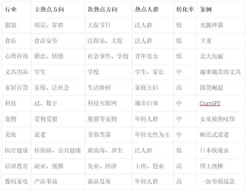 大家可以根据这个方向举一反三,我就不赘述了。如果你细心观察差,会发现最近很多素材爆款的笔记都是这些题材。 但掌握这个方法还不够,真正的爆款数据要比这个更高,咱们接着往下说。 第二步:选择热门爆款领域很多人在做热门的时候过度听信所谓“垂直”的说法,上来就做精准小领域,导致流量一直起不来,事实证明这样是错的。 其实你可以先做泛流量,起号之后能带动10-100万的用户曾经看过你的笔记,这里面就算只有10%的用户才是你想要的精准用户,你都能以至少1万铁粉,而且都是精准的。 相反,你垂直起步慢慢涨粉慢慢熬,可能坚持一年都没有2000精准铁粉。 这种铁粉机制,让很多只有一千多粉丝的博主也能变现好几个w,比几万粉丝的大号赚的还多,爆款率也高很多。 所以不能只看表面,要看最终结果。 想要直接触达爆款结果,最好的方法就是去找一个训练营跟着实操。 我总结了一个爆款领域的表格,也发出来给大家参考↓↓↓ ![]() 接下来我再讲讲利用爆款笔记变现的方法。 第三步:爆款笔记和变现流程的打通看过我之前的小红书文章的粉丝都知道,我有个粉丝留言让大家特别有共鸣,就是她看了我的文章后,按照我的方法去做了,就爆了一条1000w小眼睛,结果无法变现。 这种情况其实很常见,有人莫名其妙小红书爆了,有些人按照我前面分享的方法爆了,但不管是哪种,最后都遇到一个共同的难题,那就是变现。 真的,做小红书有流量但是无法变现,那再爆款的文案,也是耍流氓。 之前一个实习生小姑娘给公司写了一个笔记带来200w阅读量,一开始被各种夸,但是半年后小红书还是无法为公司带来任何收益,这200w阅读反而成了领导批评和反噬这个可怜的小姑娘的借口,最后小姑娘不得不辞职。 这个经历相信很多做小红书运营都有,其核心原因就是不懂得变现。 小红书变现的策略一般有三种: