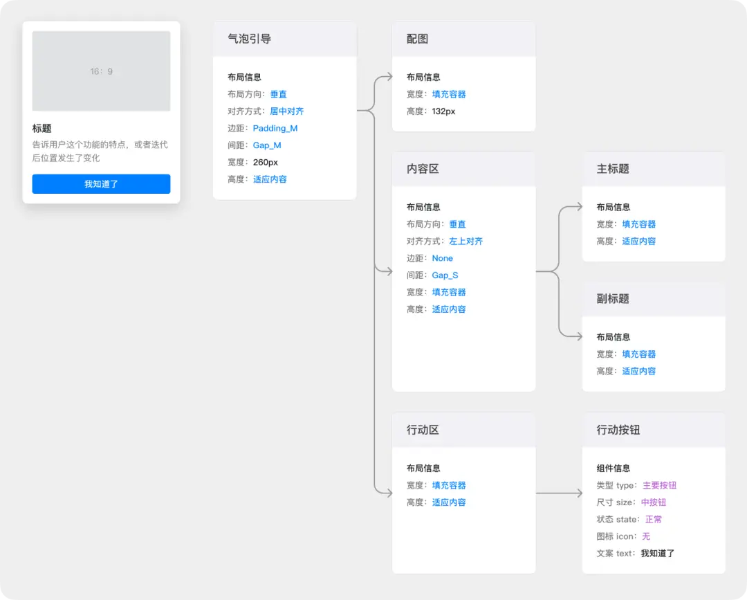 要求设计师提供全维度、全链路的设计稿,不仅让设计师“原地爆炸”,也让迭代效率无法保障。 再者,分离的工作环境(不同源)使得设计师和工程师的信息传递主要依赖沟通,除了切图等极少部分,其他都靠人际理解。而人际沟通往往低效且容易出错。 最后,设计规范本身的实际约束力常常不如预期。一方面,业务迭代速度过快,规范和组件库的更新难以跟上;另一方面,规范制定者很难覆盖所有业务场景。结果,规范往往不够用,设计师只能“打散组件”,最终导致重复造轮子的现象依然普遍。 让我们来看看,设计工程化是如何解决上述问题的 02. 设计工程化 设计工程化的核心定义是:让设计稿不仅仅作为下游理解的效果图,而是成为产品工程(代码)的一部分。它的实现依赖设计师和前端工程师的共同努力。 对于设计师而言,要做到“工程化设计”,即在设计时应用工程思维,构建符合实际开发逻辑的设计稿。而对于前端工程师,则需要能够直接从设计稿中提取代码逻辑和信息,实现高精度的还原,接近设计到代码的直接转换(准D2C)。 这种高度协作依赖于一个共同的基础:“同源的设计系统和前端系统”。这意味着设计和开发之间使用相同的规则和组件,从而在设计和实现之间建立无缝衔接,提升效率和一致性。 ![]() 作为一名设计师,重点聊聊上图左边的「工程化设计」。设计是开发的上游,只有设计师先做到了,整体的工程化才得以可能。 1. 工程化设计的关键要具备工程思维,首先要跳出「绘画思维」,避免只把设计稿本身当作作品来对待,而应将其视为真实产品的组成部分。在真实的产品中,场景、数据、交互都是动态变化的,唯一不变的是各元素之间的关系。 因此,工程化设计的核心是描述这些关系。 设计师主要关注两类关系:空间关系和逻辑关系 ![]() 1)空间关系 指的是界面中各个元素之间的位置、大小、对齐等布局方式。通过在设计软件中使用自动布局和约束系统,设计师可以定义容器和子元素的排列方式。当界面元素发生变化时,系统会自动调整这些元素的大小、间距和位置,从而确保设计的适应性和一致性。 以下是一个气泡引导的案例,描述了自动布局如何定义元素的布局逻辑。 ![]() 气泡引导案例,描述了自动布局如何定义元素的布局逻辑 2)逻辑关系 它描述了界面元素如何由基本的样式token构成,并且这些基本元素如何组合成更复杂的组件。通过层层调用,建立起一个原子设计模型。 在这种模型中,每个元素都不是独立的,而是与其他元素有着明确的依赖关系。元素的样式、行为或功能是从其基础组件中继承来的。建立这些逻辑依赖关系后,所有元素都成为「有源」的,而非固定不变的。这意味着底层的变化,如样式或功能的调整,会自动影响到所有依赖于这些底层元素的上层组件,从而保持设计的一致性和可维护性。 ![]() 原子设计模型的简单示例 关于自动布局和组件系统如何使用,网上教程很多,在此不表。 当设计师能够准确描述并构建这些关系时,设计稿能够成为产品工程的一部分,设计与开发的衔接将更加顺畅。原因在于前端工程师使用类似的方式构建页面,即设计和前端实现的是“同源化”,意味着二者使用相同的原材料和逻辑进行页面构建。 ![]() 无论是 Figma 还是国内的 Mastergo 等设计软件,前端工程师都可以直接从这些工具中获取可用的代码,前提是设计稿的工程化做得足够好。比如,对于使用自动布局的容器,前端工程师可以直接读取到对应的 CSS 代码。 ![]() 比如,在设计稿中使用的组件和组件属性,前端工程师可以在开发中找到相同的组件及其 Props。这种一致性确保了设计与前端实现的无缝对接,提高了开发效率和一致性。 当然,设计和前端的同源化依赖于设计系统和前端系统的有效对接,这是另一个重要的课题,以后有机会再聊。 ![]() 2. 挑战:是不是把前端的工作转移到了设计师身上?在推行工程化设计的过程中,确实会面临一些挑战。例如,工程化设计是否会增加设计师的压力,或者是否会限制设计师的创作自由? 实际上,并不会。我们并不建议在设计完成后再进行工程化改造,而是提倡从一开始就采用工程化手段进行设计,这样可以提高效率,避免后期的繁琐调整。 如何通过工程化方法高效地构建设计稿?通过在设计阶段应用工程化手段,可以让设计师在设计时就考虑到工程实现的细节,从而实现更高效的工作流程。这样,设计师可以专注于创意和用户体验的提升,而不是在后期做大量的调整和修正。 并且,养成工程化设计的习惯,对设计师本身有诸多好处: a. 便于表达更多状态 Before:要表达不同的状态(如暗黑模式、多尺寸设备、多语言效果),往往需要重新绘制,过程繁琐复杂 ![]() After:通过设计工程化描述关系,设计稿可以在不同状态之间快速切换,节省大量时间和精力。 ![]() b. 简化界面布局调整 Before:传统布局方式下,元素的的尺寸、位置、对齐方式都是静态的,当界面内容有增减时,所有相关元素都需要手动调整,非常低效。 ![]() After:使用自动布局后,元素的的尺寸、位置、对齐方式是受关系约束的,是动态的。当界面内容调整时,相关元素会自动调整,非常高效。 ![]() c. 减少犯错的可能性 Before:元素的位置和对齐依赖设计师的像素眼,容易因不小心拖动而出现错误。 After:使用自动布局后,可以选择规范中定义好的间距和边距样式,
