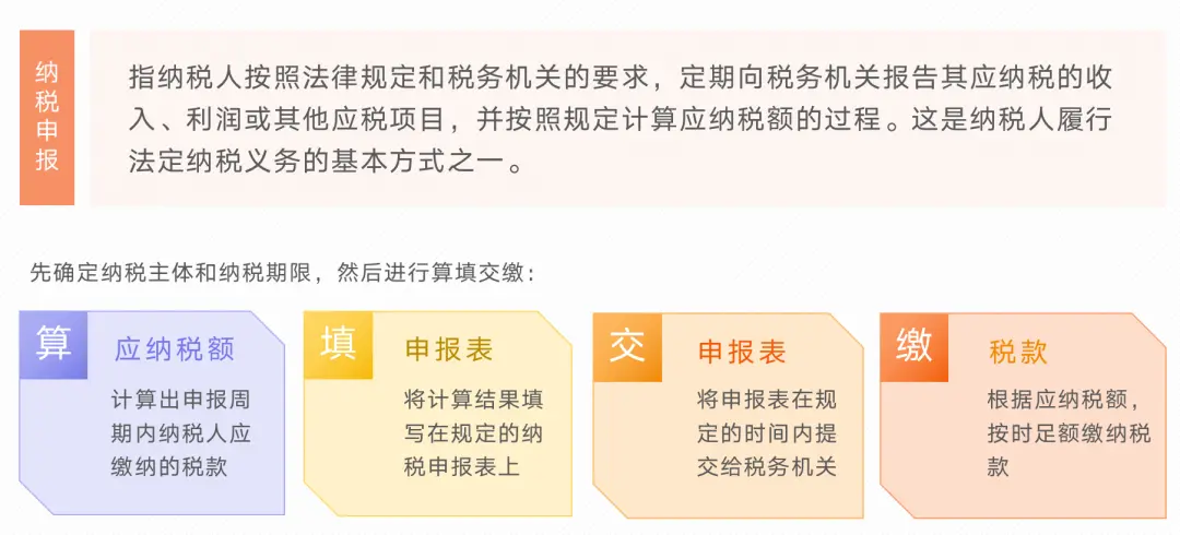 税收是国家公共财政最主要的收入形式和来源。国家通过纳税申报的方式进行税收征收管理。 企业通过纳税申报,向税务机关提交有关纳税事项书面报告。 金税四期之前,纳税申报系统由各省市税务机关自行管理,只有页面没有接口。多省经营的集团型企业,在纳税申报时,需要适应不同省份的软件系统,线下手工处理或通过开发/外采纳税申报前置系统等方式,提前准备好纳税申报资料,在征期将资料提交给税局并完成缴税。 金税四期,为方便此类企业更简捷地纳税,国家税务总局搭建了全国统一的纳税申报系统,同时提供web页面、APP和API接口服务,方便各类企业在各种场景下合规纳税。同时,达到税务机关数字化监管市场行为的目的。 本文将从纳税申报介绍、业务流程与架构、申报产品通道、纳税申报产品设计等几个方面进行建模和探索,提供纳税申报系统产品设计建议,以期抛砖引玉,与志同道合的伙伴共同创造更易用的纳税申报系统和更有价值的商业模式。 内容目录如下所示,内容较多,请在相对充裕的时间阅读或按需阅读: 1、纳税申报介绍 1.1节:纳税申报的定义 1.2节:纳税申报系统简介 1.3节:应用场景示例 2、业务流程与架构 2.1节:纳税申报的业务范围 2.2节:纳税申报的业务流程 2.3节:纳税申报的产品架构 3、申报产品通道 3.1节:乐企/电子税局/增值税综合服务平台通道 4、纳税申报产品设计 4.1节:业务模型 4.1.1 新增表样 4.1.2 基础设置 4.1.3 数据采集 4.1.4 公式定义 4.1.5 准备申报 4.1.6 提交审批 4.1.7 电子报税 4.1.8 凭证归档 4.2节:增值税及附加税费申报 4.2.1 业务流程 4.2.2 系统逻辑 4.2.3 页面示例 一、纳税申报系统介绍 1.1 纳税申报定义纳税申报定义: 纳税申报,指纳税人按照法律规定和税务机关的要求,定期向税务机关报告其应纳税的收入、利润或其他应税项目,并按照规定计算应纳税额的过程。这是纳税人履行法定纳税义务的基本方式之一。 ![]() 纳税申报步骤: