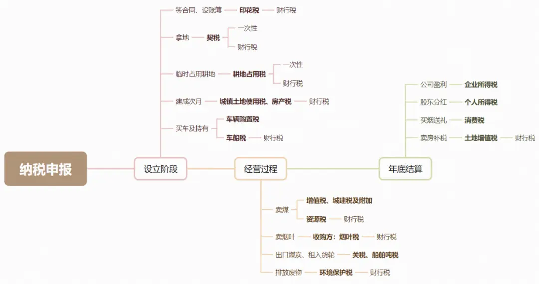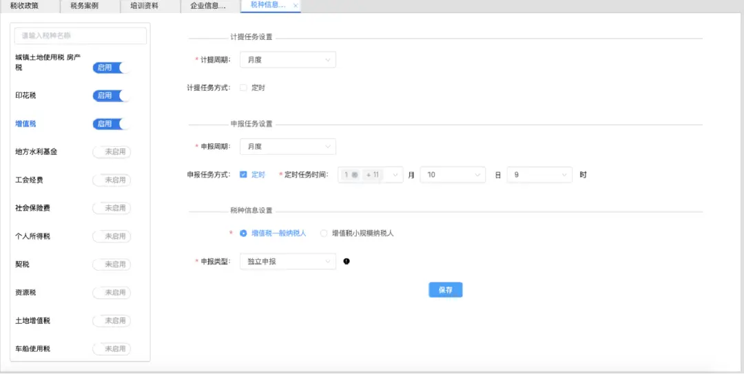 在搭建纳税申报系统过程中,数据源比较重要,不同税种,数据源不一致,需要分开处理。 数据源处理完成后,后续的申报表填写、纳税申报、税费缴纳,流程相对一致,每个地区每个税种的细节,也有区别。 ![]() ![]() 1.3 应用场景示例目前中国需要缴纳税费的税种共18个,以公司从设立到年底结算的纳税场景举例,相对典型的场景和所纳税种如下图所示,绝大多数企业不会遇到所有税种,一般需要缴纳其中的两三种或七八种的样子。 ![]() 纳税申报系统需根据实际需求包含以上税种。 二、业务流程与架构 2.1 纳税申报的业务范围根据上文提到的纳税申报步骤及申报资料通过系统自动化填写或计算的需求,一般将纳税申报系统的业务类型设置为:数据源管理、税金计算、申报表、一键申报、税费缴纳和基础信息。 如下表所示: ![]() 数据源指在纳税申报表自动化填写或计算时,需要采集数据的来源。一个税种需要哪些数据作为填写申报表的依据,那么这些数据对应的系统,就是源数据系统。申报系统需要将数据采集并在申报系统管理,采集后所形成的诸多台账,即申报系统的数据源。 数据源自动生成申报表,是需要通过规则和计算公式转化的,这个过程在申报系统里成为“税金计算”过程,根据具体税种的业务要求,配置好相应的规则和逻辑,在需要生成申报表的属期生成对应的申报表,是税金计算环节需要做到的工作。 申报表表样可以是在代码里写好,也可以通过报表生成。数据源根据税金计算结果产生的申报数据,最终落在申报表表样里,形成即将申报的文件。 确认填写好的申报表内容无误后(通过检查、校验、调整、审批等方式确认内容可用性),与税局通道对接,完成一键申报工作。 申报通过后,与银行或者资金系统对接,完成税费缴纳工作。 从数据源管理到税费缴纳,每一步都需要与一些基础信息交互,比如税务日历、减免税政策、计税信息等。这类基础信息可抽取到一个模块管理,存储时需支持业务侧频繁调用。 对上述业务范围进行设计和处理时,有几点建议供参考: