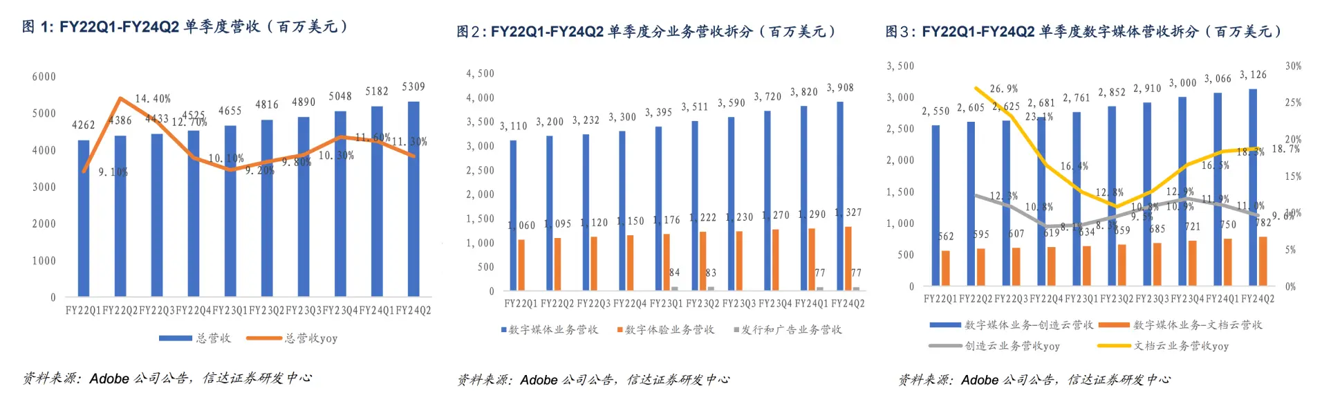 四、服务于产品定位目标下,如何优化? 1. 行业趋势随着 AI 技术的迅速发展,影像处理工具正在进入一个全新的时代。 Adobe 作为该领域的领先者,已经通过集成生成式 AI 大幅提升了 Photoshop、Lightroom 等产品的使用效率和市场覆盖。根据 Adobe 2024 财年第二季度财报,数字媒体业务收入达到了 39.08 亿美元,同比增长 11.3%。 ![]() AI 功能,如 Firefly 的引入,显著降低了软件使用门槛,根据Everypixel Journal统计,上线六周内生成超过 1 亿图片,充分证明了 AI 技术对创意工具市场的深远影响。 ![]() 2. 差异点填补了中端市场的空白: