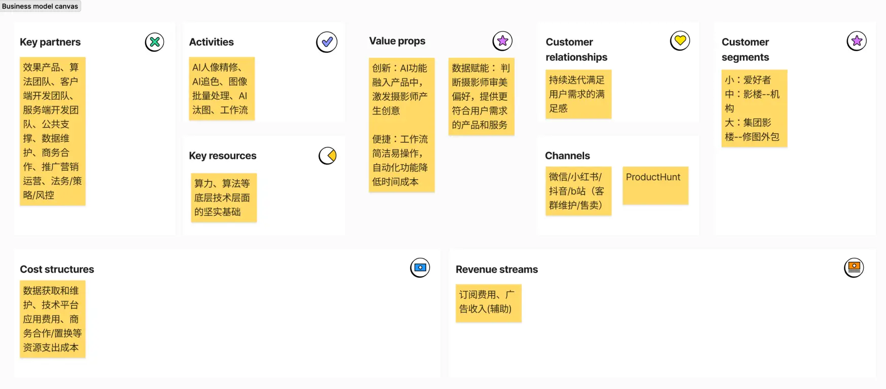 3. 优化方向效率提高+数据赋能,避免无谓的反复操作 通过AI技术,帮助用户自动筛选出最符合需求的照片,提升工作流的效率。例如,在用户上传大量照片后,系统可以自动根据常见美学标准进行初筛,推荐最优照片。或类似Aftershoot的个性化学习功能,逐渐了解用户的修图风格,从而提供更精准的AI修图建议。 4. 解决方案引入LoRA可以根据摄影师的美学偏好筛选出符合“设计意图”的图片,减少误删风险。 LoRA概念: 是一种微调技术,能够在不大幅修改原始模型的情况下通过少量数据进行微调,训练效率高。这对摄影师审美的定制化要求非常适用。 5. 需求概述商业价值画布: ![]() 6. 发散性思维提出疑问:是否可以做可拖拽模块的图像编辑工作流? 技术架构: