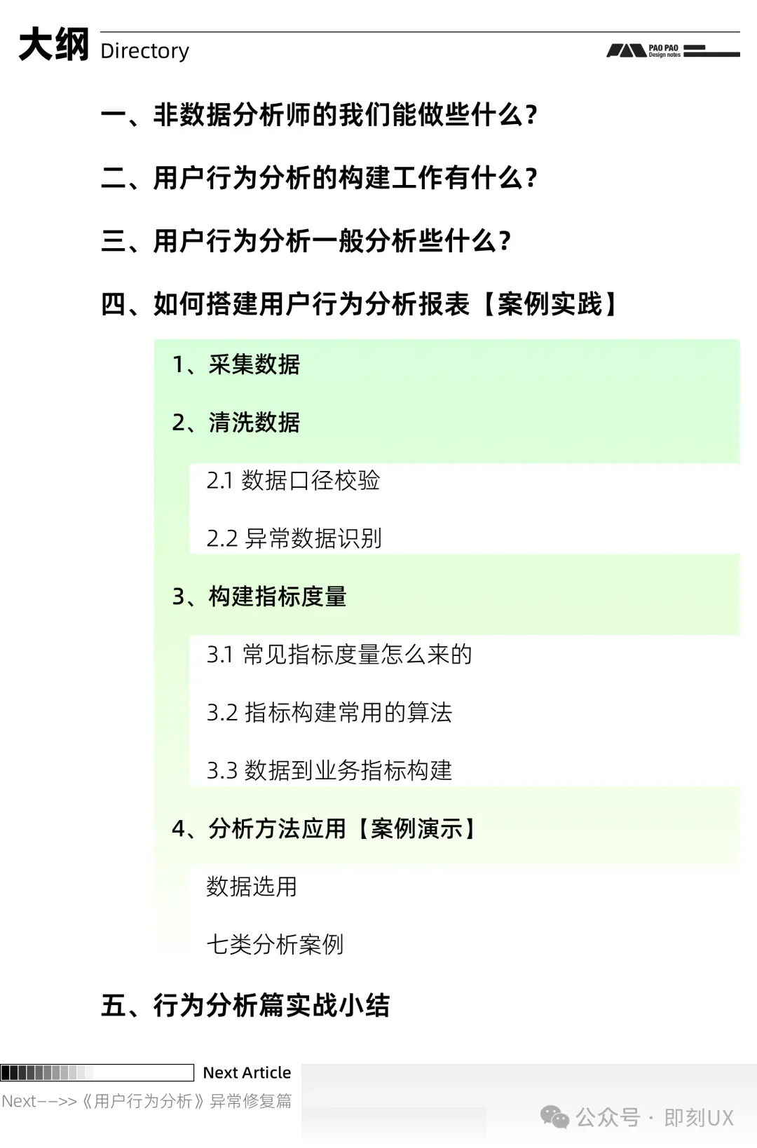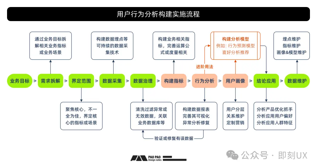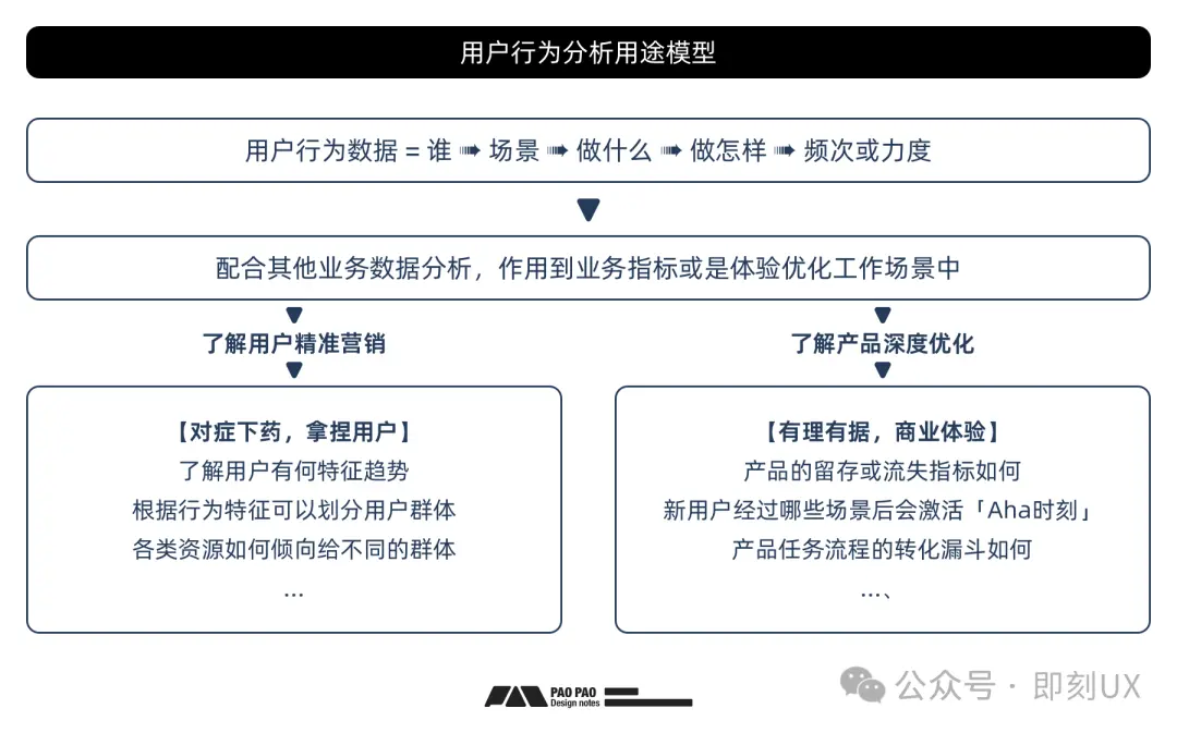 上篇聊了用户行为分析的构建,此篇继续聊聊一些常见的分析方法与实践,不会太深奥,主要是面向产品设计或初中级用研这些群体,目的是更好服务“用户体验”与“商业转化”,期望能帮助大家更好达成分析诉求推进业务,或是与数据相关岗位的同事更好交流。 期望是:不止会看报表,还能搞定报表跟业务分析(不做只会张嘴,还要会自己动手) ![]() 一、非数据分析师的我们能做些什么? 答: 【需求是什么】 知道业务需求是什么?需要什么样的行为数据支撑?即能够根据业务提出行为分析诉求,来辅助实现业务改进或验证。 【指标怎么算】 清晰字段参数的含义与数据口径,知道用哪些数据可以获取目标指标,例如通过哪些数据可以视用户为活跃用户?哪些数据可以视为用户有高价值,既然上一篇有人不关心如何构建用户行为数据集,那么作为产研设计人员,你要什么数据和什么口径你总得说清楚吧。 【报表报什么】 期望汇报哪些指标数据,用什么图表形式表达更合适,或许很多同学没有上手执行过这些,甚至认为都是BI或开发的事情,不然,实际上不同职能角色的报表的诉求是不一样的,即然你提出了需求,那么需求落地的规格肯定是要参与啊,要是你有能力使用BI工具自己执行,那还不是得心应手? 二、用户行为分析的构建工作有什么? 整个构建流程或概念参考下图,或前往上一篇的,此处不赘述; ![]() 三、用户行为分析一般分析些什么? 通常我们做用户行为分析时会分析哪些东西?能解决或反映什么问题?适合哪些产品或业务场景? 事实上概念很简单,请看下图; ![]() 如果只是聊用户什么时候在什么场景做了什么事件,实际对业务意义不大,所以这里结合一些典型的用户行为分析方法的模型,聊聊一般分析些什么,起到些什么作用。 但此前请让我再补充一个后文经常出现的基础概念,即“度量指标”是什么?这是一个用户行为分析中常见的基本概念,度量指标通常就是一个数值,可以用作衡量业务的好坏或高低,它就像是试卷的分数通过每道题的得分统计得到,也可以像是体温,数值即指标结果。 常见的用户行为分析工作基本上就围绕拉新、促活、转化、留存开展,根据不同的业务诉求会配合各类分析方法来找问题或改问题,以下表中罗列了主流的行为分析工作与说明,以帮助你了解和匹配业务诉求。 ![]() 四、如何搭建用户行为分析报表【案例实践】 以下会用到神策的Demo演示如何实操,以帮助大家更快上手和理解,用其他产品来构建分析报表也是大同小异的,Excel也能胜任,熟悉数据库操作与写代码脚本分析的大佬可以保持硬核的分析手段哈; 首先再帮助大家回顾一下数据报表的生产过程,后续会围绕这个过程的节点来讲怎么搭建分析; ![]() 1、采集数据主要是通过数据埋点、传感器采集或是后台日志等方式获取用户操作的行为数据,即每一个功能按钮发生操作行为时的事件日志,这些日志会包含多个维度的数据,例如页面场景信息、动作类型信息、用户角色信息,为分析出更完整有效的结论,业务上也会尽可能的收集到更多业务或用户信息,然后将不同类型的数据表进行关联以产生更完整的数据集,这种关联也被叫做数据表的血缘关系。 例如一张用户行为数据表+用户属性表,其中通过相同且唯一的数据进行绑定,如果你做分析时发现缺少数据就可以询问有无相关数据表可以绑定,最终你会看见一个更完整的行为事件的数据,这也是为什么用户数据会被拿来交易的原因之一; ![]() 2、清洗数据2.1 数据口径校验 数据源准备好以后,就可以接入到数据分析平台或工具之中,当我们发觉数据源里的数据特征有异常或不符合业务场景,那么就需要将数据清理或纠正,以保证用作分析的数据是有效的,因此在产品开发前,作为产品或是交互,定义好这些信息规格很重要,常见的数据格式可参考下表,先从熟悉业务数据特征开始吧,如果业务数据特征都不熟悉,还谈什么数据敏感 ![]() 2.2 异常数据识别 清洗数据简单概括就是在应用或构建指标及报表前,对行为数据查缺补漏,去除无效以及纠正错误,通常这些工作都是由开发或数据BI去进行,但我们需要能够识别出缺少什么数据、哪些数据有异常、哪些数据不符合规范、哪些数据口径对不上,这些就需要通过熟悉业务场景或产品需求设定来进行识别了。 ![]() 如果说数据基本是符合预期的,那么在下一阶段的指标度量工作中,剩余的清洗工作主要就是条件过滤,帮助筛选出符合预期或有效的数据进行分析应用,这种头疼的清洗或过滤需求我时常碰到,我来给你们举个例子; ![]() 3、构建指标度量3.1 常见指标度量怎么来的 当我们清楚数据的含义与特征后,其实就应该发现很多数据是可以直接拿来统计后作基础指标的,如常见的人数、某事件的操作次数、人均操作次数等,并且有些指标结合时间分布、动作类型、用户去重统计等就可以产生更多其他的基础指标,这些经过简单加工的基础指标还可能会被其他指标计算时用上。 例如将常见的【用户ID】【首页访问】【充值金额】结合【时间维度】就可以得到以下各种指标; ![]() 当然,不同的行业会有不同的基础指标,在上一篇的《用户行为分析构建篇》中已经为大家罗列了一份常见的通用指标构建表,大家可以回顾一下,这里也提供了一个神策的指标拆解工具作为构建基础指标的参考; ![]() 3.2 指标构建常用