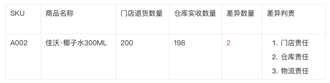 ![]() 三、差异要怎么解决? 当识别差异并定义了差异之后,接下来就要针对差异给出解决方案。 不同的差异方式,会有不同的差异解决方案,而且每一种解决方案都需要考虑到实际业务中的一些约束限制,所以并没有所谓的“标准方案”或者是“规范做法”。 作为初次接触相关业务的产品经理,可以借鉴市面上成熟稳定的解决方案,然后定制相应的、适合自己公司当前业务的解决方案,而不用过分纠结所谓的标准和规范。 这里分享一下高频常见的一些业务场景中,如果产生了差异之后要怎么处理,其中的逻辑仅供参考,大家不一定需要因地制宜,适当裁剪修改出适合自己公司业务的产品方案。 1. 采购场景的差异零售商总部向供应商下采购订单后,供应商会根据采购订单的要求送货到指定的仓库。因为大多数情况下,双方业务约定不能超量接收,如果发生了超量的部分,则需要额外补采购单收货。所以,此时发生了差异,一般是因为数量差异导致的,而这种差异的原因可能是供应商少发了,供应商发错了,仓库少收了,仓库点错了等。 所以常见的做法是,仓库端发现少收或者错收之后,会再次清点确认,如果还是有问题,那么就会拍照+文字记录,反馈给采购方(零售商总部的采购员),然后由采购方去跟供应商沟通和确认。 由于追责的过程可能比较久,所以仓库一般完成了差异的上报沟通之后,接着就会将实际收到的货物数量录入到系统中,然后回传到零售商总部的ERP系统中。 所以,一般的ERP在采购订单->采购入库单的环节中,往往都会支持多次入库和缺量入库,反正就是按仓库实际回传的数量来作为入库的数据。 ![]() 2. 采购退货场景的差异当零售商总部完成了采购之后,会因为货品质量的问题,销售运营的问题,政策法规的问题等发起退供。一般来说,提供之前需要和供应商沟通,退什么商品,要退多少,什么时候退,要怎么个方式退货(供应商自提还是仓库发货)。 当线下沟通确认了之后,就会在零售商总部的ERP中做采购退货单,然后推送采购退货单给仓库,让仓库安排出库。预计出库的数量和仓库实际发出的数量可能也会有差异,可能是仓库端发出的时候就知道了,也可能是要等供应商接收到了货物之后才知道。 如果是仓库端在处理采购退货出库单的时候就发现了差异,那么一般会按仓库实际出库的数量来做作为最终退货的数量,类似于可以“缺量出库”。 如果是供应商最后收到了货物之后发现了差异,那么就需要线下人工协商沟通,看怎么处理这一部分的内容。如果是仓库少退了这部分的内容,那么可以在下次供应商送货的时候把这个少退的商品给到供应商。 采购退货的核心点是要考虑供应商开红冲发票对账,所以供应商按什么数量来开红冲发票,那么对应零售商的采购退货单的数量也是要一样的。如果退货单是退了3个,而供应商实际只收到了2个,那么就要看和供应商协商之后是按2个来开红冲发票,还是按3个开;如果是按2个开,那么还需要手动创建一个“采购退货的差异处理单”和原来的“采购退货单”关联,确保在对账的时候数量一致,金额一致。 ![]() 3. 配货场景的差异零售商总部会从DC仓配货给各个门店中,在ERP中,这类单据可能会称之为“配货单”或者“调拨单”,也有称之为“配销单”或者“购销单”,但是对于总部仓库来说本质还是要执行一次出库的作业任务。 对于门店KPOS来说,该单据可能会称之为“门店采购单”或者“配货入库单”等,从实物的角度来说门店需要执行一次收货的作业任务。 总部配货到门店中,如果站在总部的角度,重点关注的是仓库有没有错发漏发;如果站在门店的角度,则关注的是门店有没有少收错收等。 从实物流转的角度来看,想要知道总部仓库有没有错发漏发,门店有没有少收错收,最终应该是以门店收货的情况来判断。门店收货之后,录入门店实收的情况,此时可以知道门店实收和预报的数量是否有差异。 如果产生了差异,可能是门店的责任,可能是物流的责任,也可能是出库仓库的责任,可以通过生成“差异处理单”,然后通过最终的判责来确定处理方式。 总部配货出库单的数据如下所示: ![]() 门店的配货入库单的数据如下所示: ![]() 差异处理单的数据如下所示: ![]() 如果判责是仓库责任,则可能是仓库少发了,此时仓库的实物库存“多4个”,可以采用补发的方式再额外补发4个到门店。 如果判责是门店责任,则意味着这部分损失需要门店来承担,门店实物“少4个”,可以生成盘亏单来达到账实平衡。 如果判责是物流责任,则意味着这部分损失要物流来承担,可以先将这部分的损失挂在总部,由总部去追责后再线下补录相关的货损。 4. 配货退货(门店退货)场景的差异总部配货到了门店之后,会因为商品质量问题,商品损坏、过季、滞销,政策法规,库存调动等原因发生退货业务,从门店退货到总部仓库,此场景可以称之为配货退货,也可以称之为门店退货。 配货退货的发起方可能是总部,也可能是门店。如果是总部发起,则意味着总部会通过一些计划类、通知类单据给门店指令,告知门店要退什么商品,多少数量,退到哪里;如果是门店发起,则意味着门店可能先线下和总部沟通确认,得到允许之后再从门店创建退货单,将实物退货到总部仓库中。 门店退货给总部,从实物流转的角度来看,是“总部配货给门店”的逆向版本,也就是门店发出货物的时