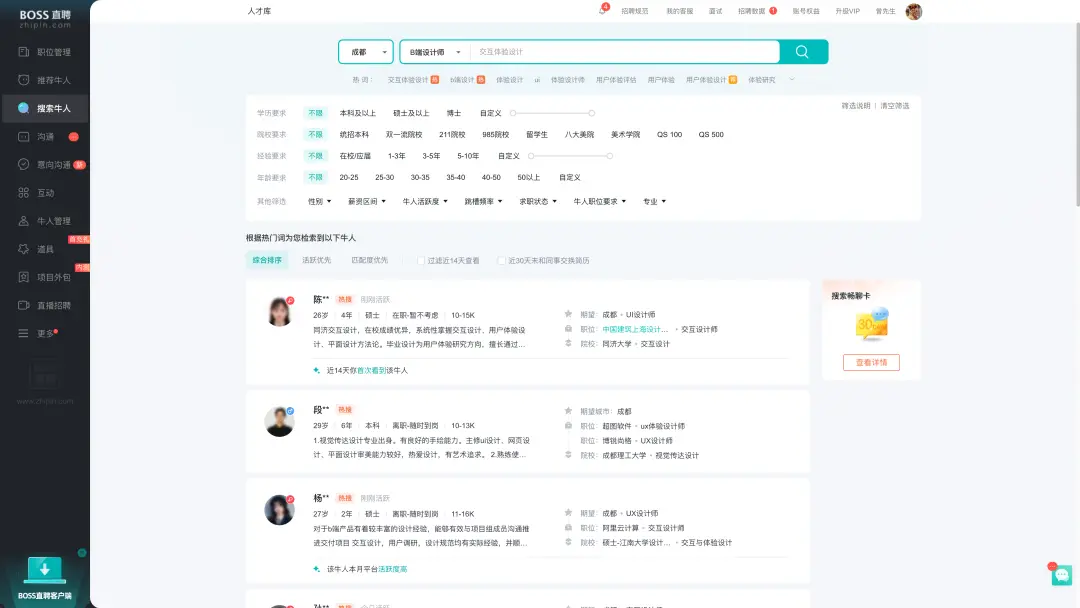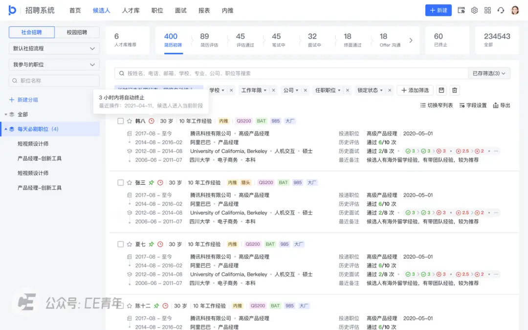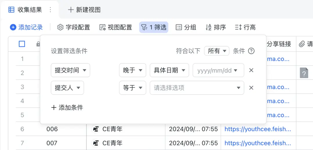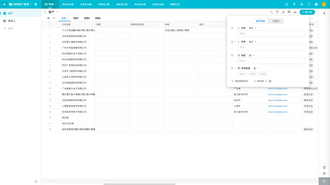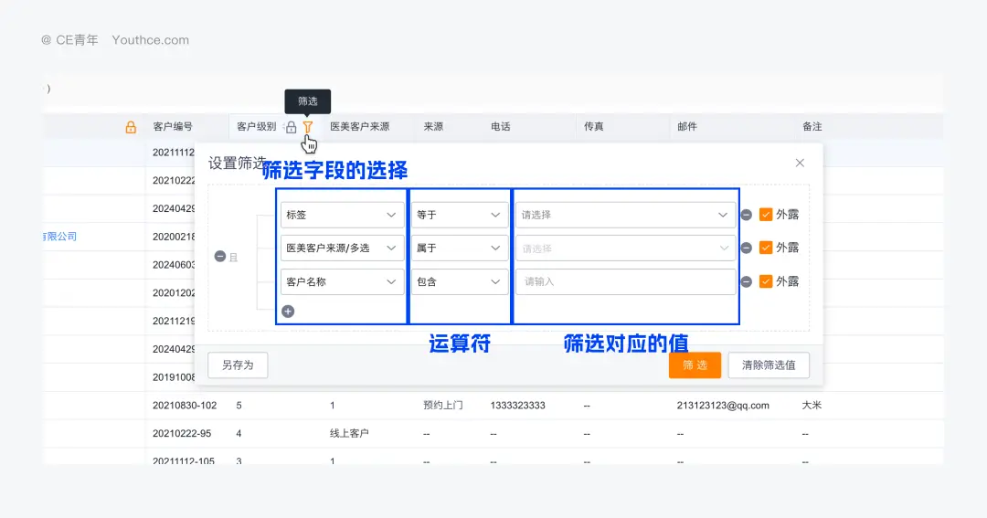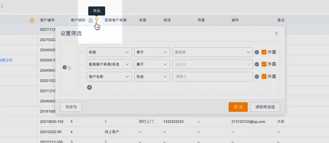 ![]() b. 在系统当中的类型也很重要系统一共会分为四类,不同的类型对应的用户群体并不相同。 如果是 运营管理型、行业属性型 的产品,比如 :有赞、小鹅通、美团商家后台、小红书千帆… 由于用户水平各异,导致我们再去设计的时候,需要去考虑将交互的难度降低,因此在设计的筛选的时候会更为简单。 ![]() 如果是一些复杂系统,则会采取更难、占比更低的呈现形式,比如 容器布局,将筛选信息收折,因为一方面是复杂系统信息不可控,因此 使用容器会更容易解决筛选当中的多字段的情况;另一方面是复杂系统的信息密度很高,很难腾出大量空间去呈现筛选。 ![]() ![]() 三、筛选的类型 随着时间的推移,你会发现筛选的类型非常多不同的形式。 很多设计师都会根据自己的业务情况,开始自定义不同的类型形式。因此我们就尝试将其进行总结~ 希望能够有一个更为完整的类型表帮助大家进行理解。 1. 表单筛选表单筛选就是将筛选模块通过表单的形式进行呈现,通常位于页面顶部,能够使用户快速点击。它的门槛很低,几乎所有的产品都可以使用表单筛选。 ![]() 当然,在顶部空间有限的情况下,我们也可以使用左右两侧的方式,去呈现表单内容。 ![]() ![]() 如果表单过长,我们就会去考虑通过收折的方式进行排布,这几乎是每一个表单筛选的必备选项。 如果筛选字段本身不多,又想让筛选的样式变得很好,也可以考虑将整个筛选作为一个标签,放置在输入框内,这会和表单输入框形成区分,能够让用户快速知道这是筛选的内容。 ![]() 2. 外露筛选 外露筛选严格来说是表单筛选当中的一个分支,其更加强调在筛选中的选项内容直接外露展示,能够更快更高效地进行数据选择。 比如在京东网页端搜索完一件商品后,就会提供较多的外漏选项来帮助我们提前进行数据的聚焦。 这里我们可以思考一下,京东为什么会将选项外露? ![]() 在这里其实就是由于搜索出来的结果过于宽泛,并且很难针对用户提供个性化的推送,因此可以将外露的筛选放置出来,尽可能的精准搜索的结果。 当然在目前的 B 端产品当中,由于外露的方式所占的空间过大,因此目前在行业中存在两种解法: a.像有赞一样,基于传统的表单筛选。 但会提供部分高频使用的筛选项进行外露,进而可以提高效率。 ![]() 比如在 淘宝、京东的网页端,它们在商品价格处提供了金额的快捷选择,外露的方式会比用户单独进行金额的输入效率要高。 ![]() ![]() b.像纷享销客一样,由于本身的筛选逻辑异常复杂,会将选项外露的权限给到用户,让其进行自定义,从而解决用户高频使用的情况。 ![]() 3. 指标筛选严格意义上来说,指标算不上一种筛选类型,只是想把它拎出来,给到同学们进行学习。 在使用时,就是当用户想要确切了解不同类型中的具体数值时,可以使用指标图+筛选融合的方式,实现高效地操作。 比如在一个 HRM 系统当中,候选人表格里 HR 最关注的便是 候选人当前的进度状态。这时候我们就可以将指标图放置在表格顶部,帮助用户进行点击,从而快速实现筛选操作,同时也会有数据下钻的感觉,比起让用户重新进行下拉选择,易用性会更强。 ![]() 4. 复杂筛选复杂筛选其实是业务当中字段不可控的无奈之举。 如果你要去使用复杂筛选,也就意味着你的系统当中会存在有非常多的自定义字段,用户在筛选时会使用 且、或、非 等筛选条件,这时候你的筛选就没办法只能这么复杂。 比如 纷享销客、Coding、ONES、明道云、简道云… 它们其实都是在系统当中,提供大量的自定义字段需要用户进行配置,因此只能使用复杂筛选进行呈现。 为了让大家理解这个无奈,我举一个例子:比如在 ONES 当中,由于自己是一个研发管理产品,每一个企业的研发流程与字段属性配置并不相同,因此会使用自定义字段让用户自行配置自己的业务。 ![]() 那自定义字段里面如何进行筛选操作就会非常头疼,大多数情况下就只能使用复杂筛选来解决问题,因此就会出现下面的这种情况。 ![]() 这里需要解释一下复杂筛选的基本结构,第一个选择器为 筛选字段的选择、第二个为 筛选对应的运算符、第三个为 所筛选对应的值。 对于复杂筛选来说,我们也会去考虑在设计上对其进行优化。 5. 表头筛选表头筛选其实也是我们的老朋友,早在 19 年的时候我们就曾聊到过。它就是在表格的表头处提供筛选的入口,当用户点击过后去执行筛选的操作。不过在表头筛选当中,会存在部分特殊情况。 a.为复杂筛选进行优化,因为复杂筛选需要进行复杂的筛选项选择,而用户所关注的数据通常也是表格当中的前半段数据,因此便可以实现点击表头,添加筛选项的操作。 ![]() ![]() b.在表头直接筛选,点击筛选图标后,直接展示下拉选项。 这就和 Excel 的表格筛选如出一辙,使用门槛也会相对较低。 ![]() 表头筛选其实也是筛选过程当中的一种补充,算是筛选不好用时我们可以考虑的一个范畴,比如在复杂筛选时,就可以与表头筛选进行结合。 6. 筛选组既然筛选很麻烦,那如果我每天进入到一个系统当中,都会去使用某一类筛选条件,那有什么办法吗? 这时候就会去考虑「筛选组」它其实就是将自己常用的多个筛选条件,通过保存的方式在系统当中记录下来,这样就能实现日常高配筛选的快速访问。 比如在飞书招聘当中,由于候选人的数据字段很多,每一个 HR 的使用习惯并不相同,因此在
