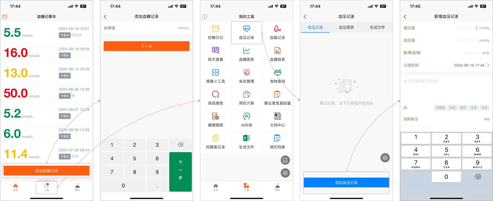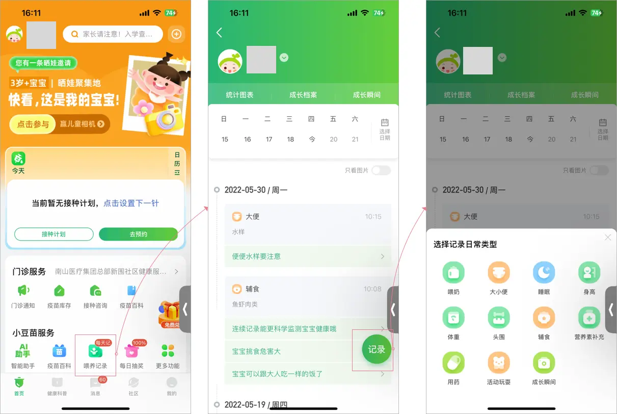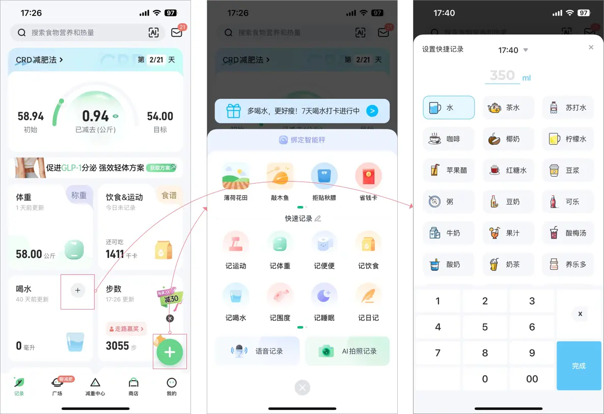 2. 小豆苗小豆苗的竞争优势在于其的疫苗接种功能,辅助功能为健康记录,而且面向是0~6岁的儿童,命名为“喂养记录”,需要至少3步触达:①点击首页的“喂养记录”-》②点击“记录”-》③点击记录日常类型。 ![]() 3. KeepKeep在健身运动方面做到极致,因此其运动的记录非常便捷,点击首页的中间快速记录按钮,至少一步即可进行运动记录,而且会跟随当前潮流,把热门的骑行放第一个入口。而对于其他的健康记录,则至少要4步:①首页点击“我的”-》②点击“我的数据”-》③点击“记录图标”-》④选择对应的记录类型。 ![]() 4. 薄荷健康从薄荷健康的slogan“用薄荷减更多”即可知薄荷主旨在减重管理,其首页即展示各类健康记录卡片,并且体现最近一次记录信息,记录模式也是最方便的,部分类型只需要一步即可达到记录页面,例如“喝水”,首页小卡片上直接显示“增加”按钮,另外一部分,可通过首页卡片进入详情后进行添加或者通过首页“+”按钮再选择需要记录的类型进入记录页面,简单2步操作。 ![]() 5. 血糖记事本血糖记事本将血糖记录历史和记录入口放于首页,血糖记录一步触达;而针对其他记录例如血压等,操作步骤就比较长,至少需要3步,①从首页切换至工具-》②在工具页面选择“血压记录”-》③血压记录点击“添加血压记录”。 ![]() 三、健康记录 接下来笔者将根据项目类型进行对比。 1. 基本信息基本信息涵盖身高、体重、BMI。 各个产品记录页面展示: ![]() 各个产品功能概述和优劣势对比: ![]() 若单从基本信息来看,针对成年人记录,笔者会推荐薄荷健康,操作简单便捷;若是针对儿童,则会选择小豆苗,除了基本身高体重记录外,结合儿童生长曲线给出育儿指导。 2. 生活方式生活方式涵盖运动、饮食和睡眠。 因涉及页面比较多,笔者不一一截图对比了,直接来看各个产品功能概述和优劣势对比: ![]() 针对生活方式的记录,若是针对儿童,笔者会觉得小豆苗更适合;若是像笔者这类对体重管理不看重,但是关注日常运动量、运动路径以及运动时需要鼓舞的人群,笔者强烈推荐Keep;若对体重或者饮食管理非常严格,笔者会推荐薄荷健康; 3. 生命体征接下来看看生命体征,纵向对比,貌似没有一个产品涵盖所有的体征项目,尤其是小豆苗,没有任何生命体征相关的记录。 ![]() 聊到生命体征记录这部分,其实没有较明显的优劣势,大体都是连接智能设备读取数据并且用图表形式展示,此外,支持手动的录入,差别仅在于支持的范围。