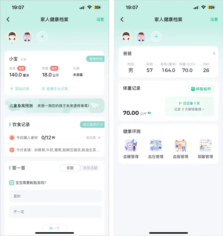 4. 儿童特有除了小豆苗面向儿童群体进行健康记录外,薄荷健康里也有儿童相关记录,仔细看薄荷的家人健康档案管理里支持选择0~17岁或者18岁及以上的新用户,年龄段不同功能模块不同。定位于儿童健康管理和老年人慢病管理,但目前看来功能并不完善。 ![]() 5. 其他再看看最后的用药和其他未提及的模块。 ![]() 四、结尾 综上,每个产品都有各自的优劣势,每个产品的设计也与其本身的定位有关系,大家在选择使用哪款产品或者需要重点分析某款产品时可根据个人的需要酌情选择。笔者对比几款产品后有以下想法: