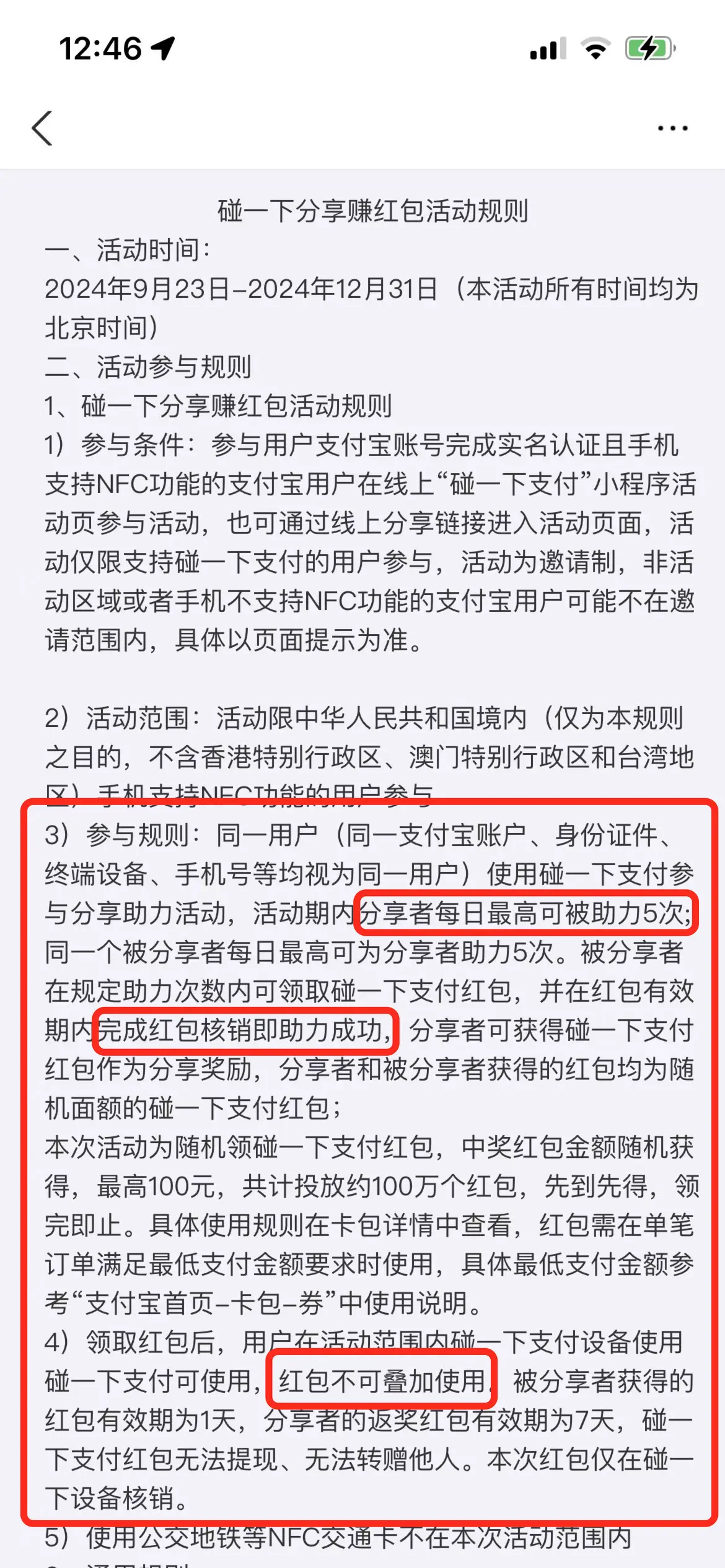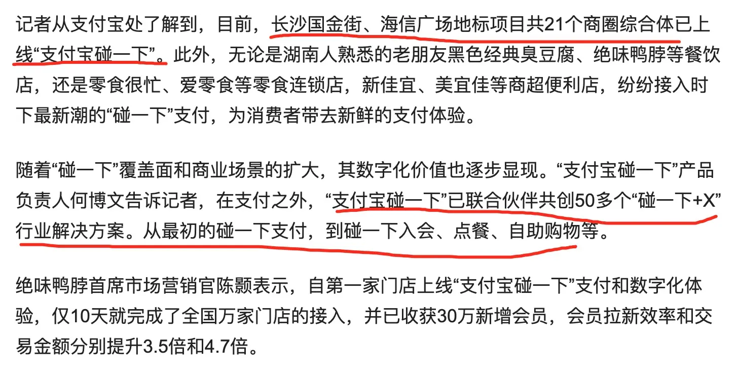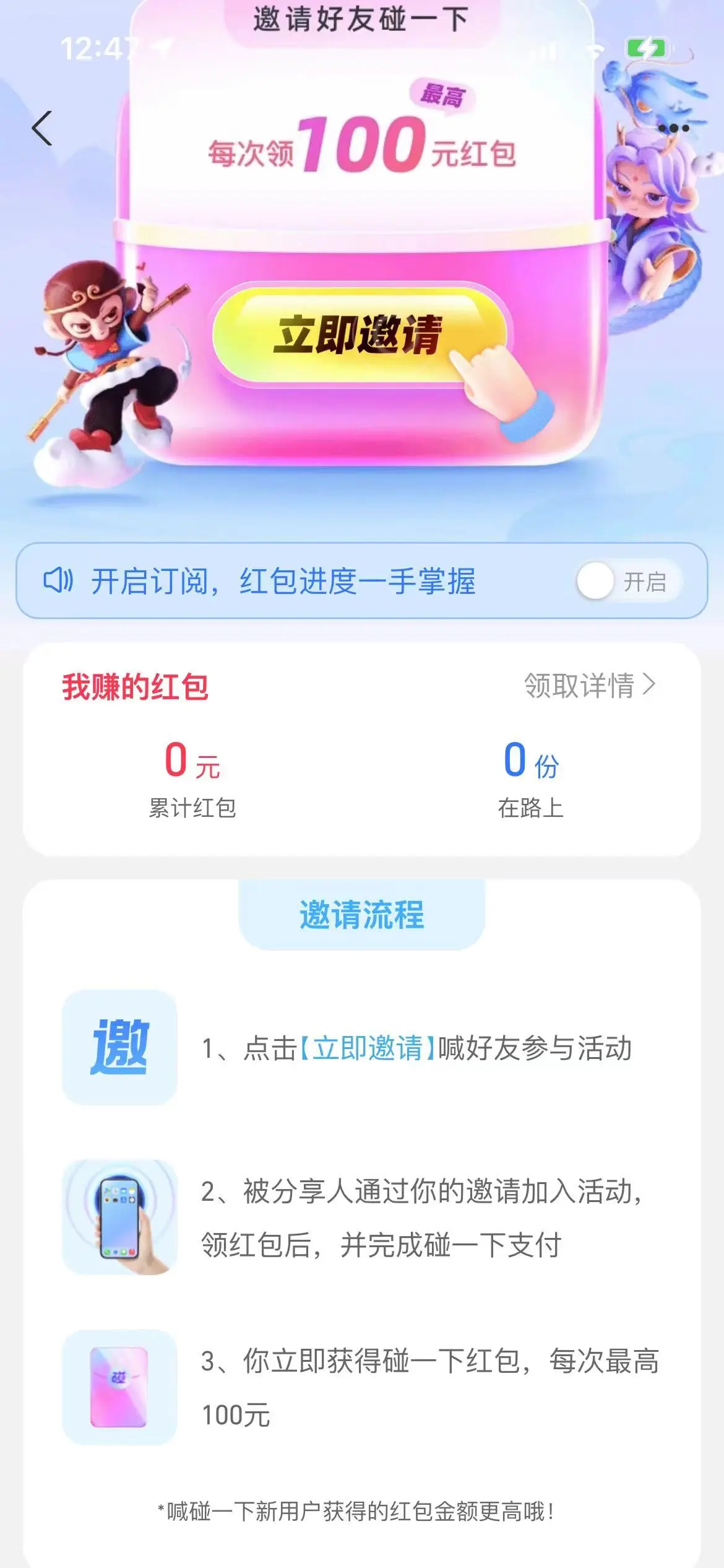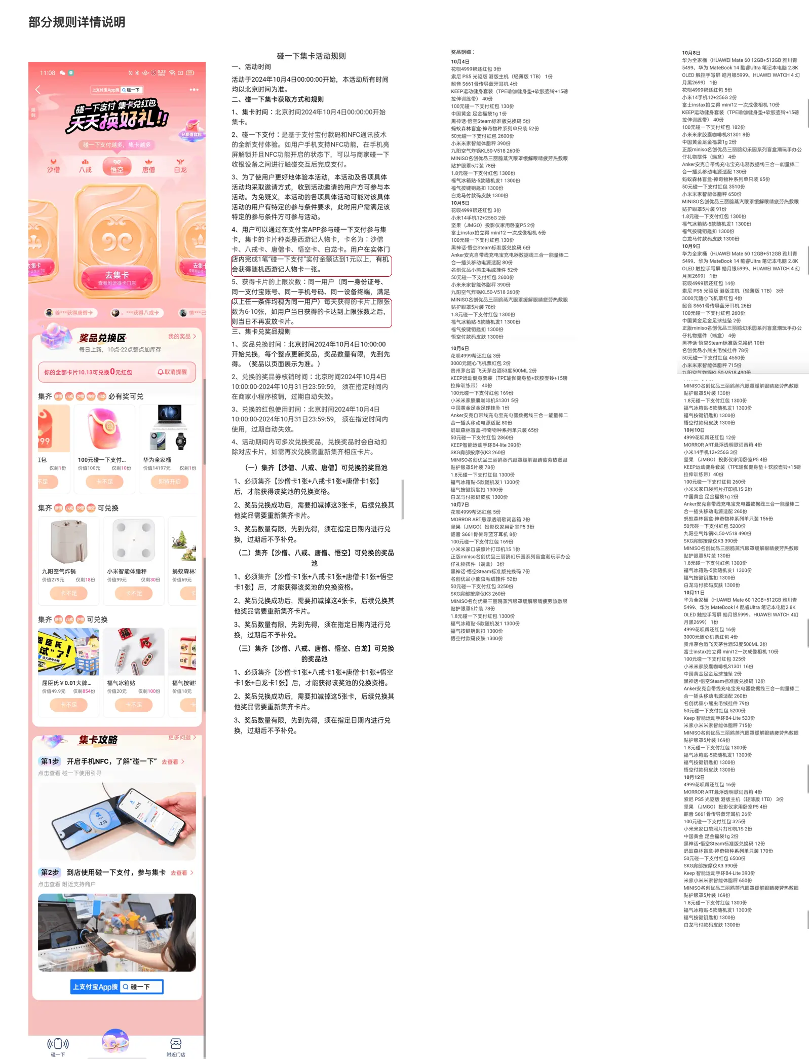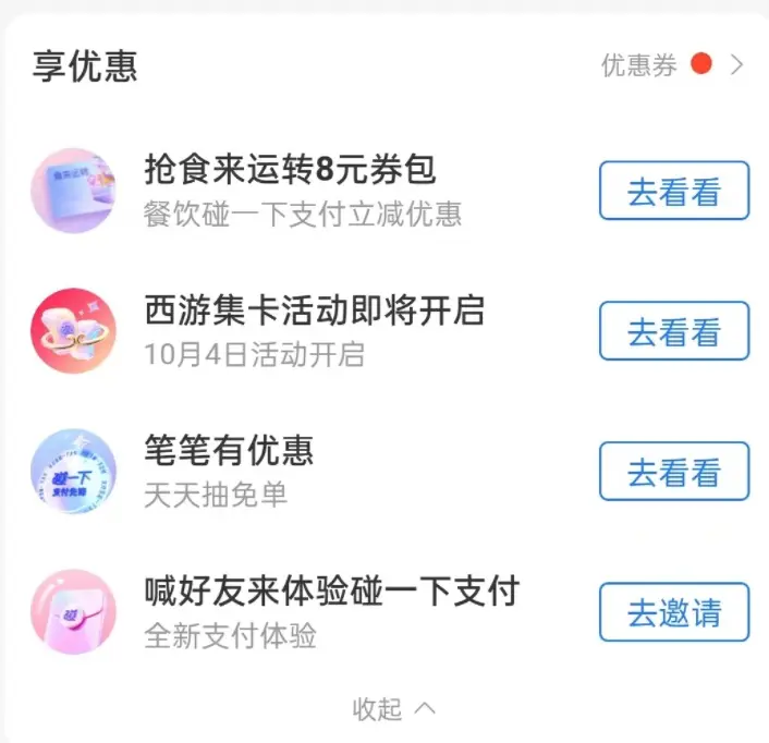 最近被支付宝新升级的支付方式“碰一下”新闻刷屏,据公开资料显示,支付宝“碰一下”上线以来2个月的推广速度是刷脸支付同期的6倍,深受年轻人欢迎。 01 支付宝“碰一下”是什么? “碰一下”是支付宝于2024年7月8日推出的支付功能。用户无需扫码,在手机解锁和NFC开启状态下,碰一下支付宝支付设备跳转支付确认页即可完成支付。 该功能是条码支付体验的新升级,原来扫码支付得需要解锁手机、打开 app、寻找付款码三步才可支付,而“碰一下”直接拿手机碰一下,只需1步即可支付,大大提升了支付的便利性。 02 “碰一下”运营活动拆解 “碰一下”功能上线2个月的推广速度是刷脸支付同期的6倍,除了自身功能便捷性的原因之外,还离不开平台精心策划的运营活动。 本文重点将围绕“碰一下”的活动玩法进行拆解分析,为活动运营工作者就如何提升新功能使用率的问题提供学习参考。 1. 丰富的优惠活动策略1)笔笔有优惠,天天抽免单 优惠政策:只要使用碰一下支付,即可抽奖,奖品范围有:积分、减免优惠红包、免单。每个用户不超过100份奖品。 ![]() ![]() 以免单为最大优惠噱头,吸引新用户到店体验“碰一下”支付。 (下图为支付宝首页banner广告图) ![]() 2)8元餐饮优惠券——“食来运转卡” 支付宝与指定线下餐饮店合作,用户可去活动入口领取1张食来运转卡,卡内含4张2元优惠券,在规定有效期内,只有使用“碰一下”支付,才可享受优惠减免。 ![]() ![]() ![]() 3)西游集卡兑好礼 每使用1笔“碰一下”且实付金额达1元以上,即可随机获得1张西游记人物卡,卡片范围有:沙僧卡、八戒卡、唐僧卡、悟空卡、白龙卡。卡片可兑换各种奖品或红包,活动期间每天10点-22点整点更新奖品库存,以此来吸引用户多次体验碰一下支付功能,培养使用习惯。 ![]() 4)邀新用户体验,得红包 该政策意在利用社交裂变效应扩大用户基础,优惠内容简单总结为:邀请用户体验,双方都有红包奖励。 政策说明:自己分享个人专属二维码,邀请好友扫码,好友即可得到随机面额的红包(仅支持在“碰一下”支付场景可用)。只要好友使用“碰一下”支付,自己就可领随机面额的红包奖励。 官方提示,如果是支付宝纯新用户,红包金额会越大。 ![]() ![]() 5)“碰一下”支付得1元周边购买券 与指定线下门店合作,同店使用2笔“碰一下”或者跨店使用3笔”碰一下“,即可获得”1元购IP周边兑换券“1张(即满19.9元减18.9元),比如标签价为19.9元的周边,1元即可购买,兑换券有效期为24小时。 ![]() 2. 注重用户体验的界面交互进入活动界面,底部有2个TAB,分别为【碰一下】首页和【附近门店】页。【碰一下】首页核心功能是操作指导和活动入口引导,【附近门店】页核心功能是地理位置导航。 ![]() 1)TAB 1-【碰一下】首页功能区拆解 (1)操作指引区 会根据用户手机当前情况,灵活调整展示不同的指引说明,同时提供机器人自助解答,降低操作理解成本。 ![]() (2)优惠活动入口区 首页展示所有重要的优惠活动主题,方便用户快速进入自己感兴趣的活动说明页。活动玩法信息参照在上文提到的【丰富的优惠活动策略】内容。 ![]() (3)kol体验解说视频 首页下方专门设置了【大家都说啥】板块,主要内容是kol使用“碰一下”的过程体验解说视频,激发用户对新鲜事物的好奇心,也增加了信任背书,期望吸引用户尝试新功能。 ![]() (4)邀请好友活动 邀请好友活动在首页有2个广告位入口,一个是【优惠活动区】的最后一行活动“喊好友来体验碰一下支付”,另一个是下图的“分享红包”悬浮图片广告位。 ![]() 2)TAB 2-【附近门店】页功能区拆解 该页面的核心功能是为用户提供可参加活动的附近线下门店位置(猜测提供的是附近4km以内的门店)。页面上方会设置不同的活动标签,标签范围有:笔笔赚、食来运转、碰出惊喜、高校免单。同一个门店可参加1个或者多个活动,门店信息也会显示活动标签。 点击不同的标签,下方的门店指引区信息也会随之切换。点击具体的门店按钮,即可唤起地图导航,整体用户流程路径设计清晰、操作丝滑。 ![]() 3. 多渠道宣传线上社交媒体:支付宝利用微博、抖音、小红书、微信等社交平台,除了官方之外,也会邀请KOL、网红、明星合作,通过图文或短视频等形式展示“碰一下”功能的使用方法和优惠活动,突出功能的便捷性,提高用户认知度。 社交媒体信息示例图: ![]() 官方app:在支付宝app首页设置活动宣传banner,以抽免单为活动噱头。 支付宝app首页banner图: ![]() 线下商圈&多品牌合作试点推广:选择一些具有代表性的城市和知名品牌商家进行试点,通过创意广告牌、海报等物料和专属优惠活动来宣传 “碰一下” 活动,吸引用户关注和体验。 从公开的新闻媒体报道了解到,当前支付宝“碰一下”已服务重庆、上海、成都、武汉、长沙、杭州、青岛等50多个城市,与知名品牌联合推广,注重先覆盖人流密集区域商圈。 以下截图来源于湖南日报: ![]() ![]() 创意视觉设计:设计创意宣传海报,突出 “碰一下” 的活动亮点,搭配醒目的色彩和有强烈情绪的文字表达,比如“敢不敢”、“爽”等,常用感叹句式或者反问句式,吸引用户的注意力。 以下图片来自网络: ![]() 专业权威科技大会宣传:今年9月5日-9月7日,上海举办了的以“科技创造可持续未来”为主题Inclusion·外滩大会,被全球科技趋势报道的权威媒体《
