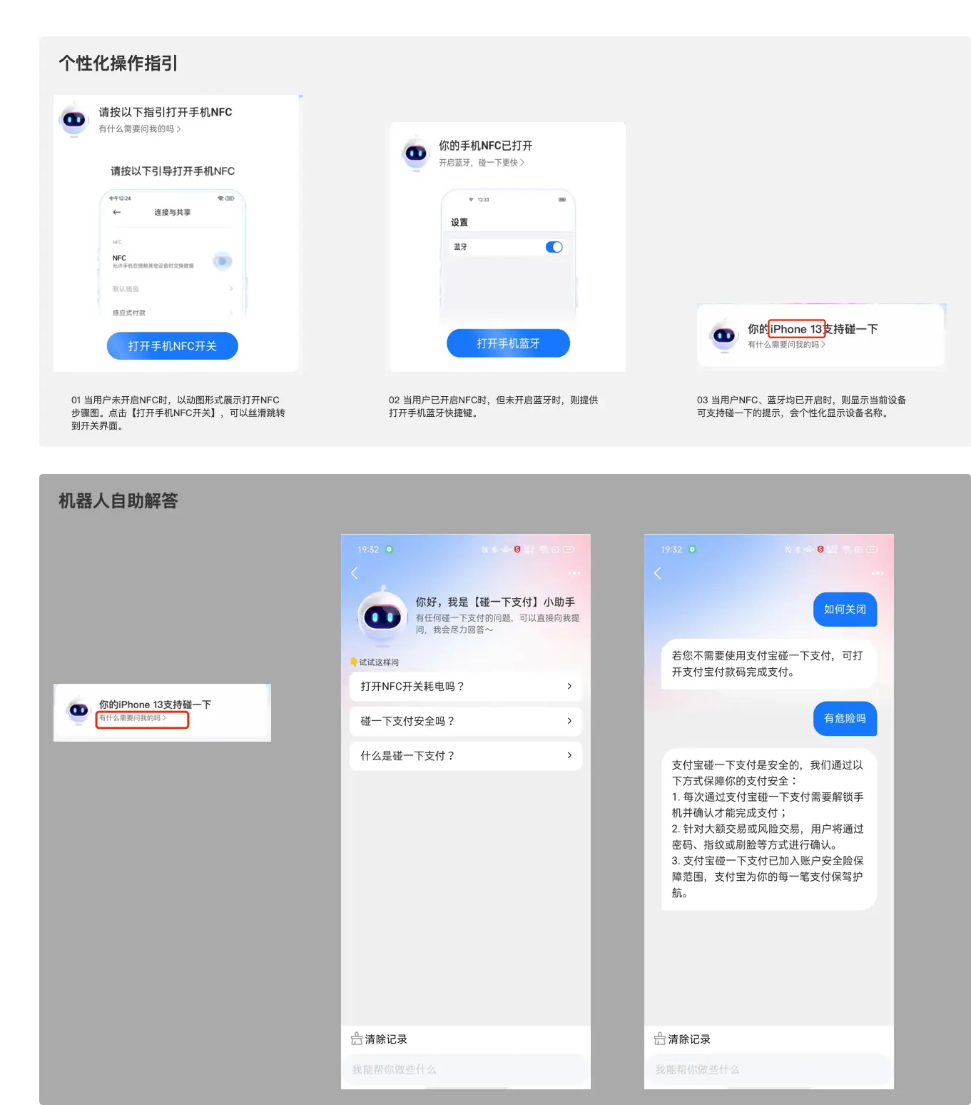 3)借助平台现象级活动流量,比如在每年的双十一、集五福活动里,设置体验“碰一下”支付即可获得双十一优惠或者解锁五福卡的机制,有利于提升该功能使用率。 4)建议优化活动界面的机器人自助解答模块,期望更智能。当前的FAQ内容较少,而且答案并不能彻底解决疑惑。比如我出于安全疑虑,想咨询关闭“碰一下”功能,其回答是让我切换成条码支付即可。而该回答并未解决我的需求,也没有直接提供人工咨询入口。 5)虽然不少线下门店已支持“碰一下”功能且有参与活动资格,但并非所有门店都积极宣传,甚至有的门店连宣传海报都不张贴,收银员也不会主动提示。如果线下门店能积极配合引导,现在的活动推广效果一定会大大增加,门店会因为支付宝平台的优惠扶持而吸引顾客交易,支付宝平台因为线下门店的积极指引而提升功能使用率,从而促进门店与平台实现双赢。 6)应该存在不少用户,已知晓支付宝“碰一下”功能但附近区域未开放活动导致现在无法体验。如果能提前设置活动预告,并引导用户开启提醒功能服务,应该有助于降低用户流失率,尽量避免活动推广资源浪费的情况。 3. 活动推广方法论总结从以上活动拆解可以看出,支付宝“碰一下”功能的活动推广策略是比较细致全面的。个人萃取提升新功能使用率的方法论有以下几点: