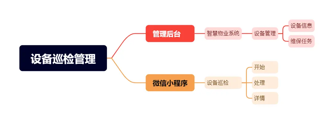 智慧园区内通常部署了大量的智能化设备,包括暖通空调、给排水、变配电监控、火灾报警、视频监控、门禁管理、公共照明等系统。这些设备的正常运行对于园区的整体运营至关重要。因此,设备维保管理不仅关乎设备的寿命和性能,还直接影响到园区的安全、能效和用户体验。1.1 目的软件需求是软件开发的依据,也是软件工程各项活动的基础。编写本PRD的目的就是将设备维保管理的需求清晰准确地描述清楚,为制定项目开发计划和后期的概要设计、原型设计、测试等阶段的工作提供可靠的依据。 1.2 范围本文档阅读对象为产品经理、项目经理、UI设计师、开发工程师、测试工程师。 二、客户端角色描述 三、产品概述 智慧园区的设备维护管理是一个复杂而重要的任务。通过采用先进的技术和管理策略,可以确保设备的正常运行和园区的可持续发展。 3.1 总体功能架构图 3.2 业务流程3.2.1 设备巡检管理 四、 功能需求说明 4.1 管理后台4.1.1 智慧物业系统 4.1.1.1设备管理 4.1.1.1.1设备信息 页面设计 设备信息列表 设备新增 需求说明 - 设备信息页面,用于管理整个园区的智能化设备信息,用于设置设备维保任务;支持设备名称、设备类别和设备状态查询;设备名称,支持模糊查询;设备类别,业务字典维护,下拉选择;设备状态,数据字典维护,下拉选择;