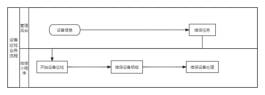 - 设备巡检状态说明:未开始,管理后台分派设备巡检处理人员,处理人员未处理;进行中,设备巡检处理人员,保存一天维保明细信息;已完成,设备巡检处理人员在设备设备巡检任务结束时间前保存所有的设备维保的维保明细;已逾期,设备处理人员未再设备维保结束时间之前保存所有的设备维保的维保明细;已逾期完成,设备处理人员在设备维保结束时间之后保存所有的设备维保的维保明细;