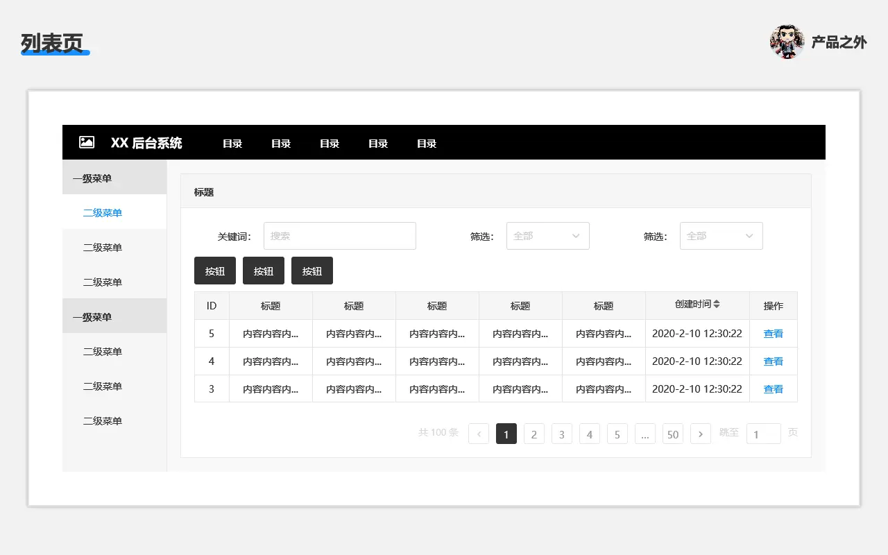 这段时间有点忙,团队又接了一大堆新活。需求一多问题就来了,部门产品的文档效率低于预期,导致开发即将出现延期。 作为产品负责人,我在想有没有什么办法,让同事们能更高效、快速地产出产品文档? 带着这个问题,我陷入了沉思。 顺手打开王者,放松大脑思考下对策。 01 一段悲催的往事 继王者 8 连跪后,我知道今天不太适合打排位了。 所以没办法,打开 B 站卷下前端 HTML、CSS 基础(假装自己很努力),想着我学完后能整个 APP 出海赚刀乐。 你可能会问,一个产品学啥前端?我只能说,这是一个悲伤的故事。 我为什么做产品,原因是我毕业那会,听说互联网前端赚钱多。 所以我花了 3 个月时间闭关,结果还学不会 JavaScript。 面临失业的恐慌,有个朋友说你怎么不去做产品?听说人人都能做产品来着,工作轻松动动嘴就行了。 我这个人听劝,大概花了一天时间,临时抱佛脚学会 Axure 基础操作,还临摹了十几张原型去面试。 这回运气很好,我顺利成为了一名原型仔。 02 如何通过结构化伪代码,大幅提升文档撰写效率? 话说回来,这几天学一些前端基础,还是有点用处的。 凭着半吊子的前端知识,加上团队面临的文档效率问题,促使我思考图形化产品文档的必要性。 我尝试着用一种前端伪代码的方式,去代替旧的原型界面,结果发现了这 5 个意外惊喜。 03 能力提升 一开始我的想法很简单,秉承着 MVP 思维,先试着用伪代码,去代替后台列表页的文档撰写。 在这过程中,我一直不断地熟悉、学习组件库文档。 比起枯燥的看书、看视频学习,这种面向问题的学习过程,让我工作之余,顺便带薪掌握了不少前端知识。 我起码大致搞懂了,前端是怎么一回事。 为了便于理解,我总结了一个公式(不一定准确),即前端 = 组件 + 交互 + 数据 + …。