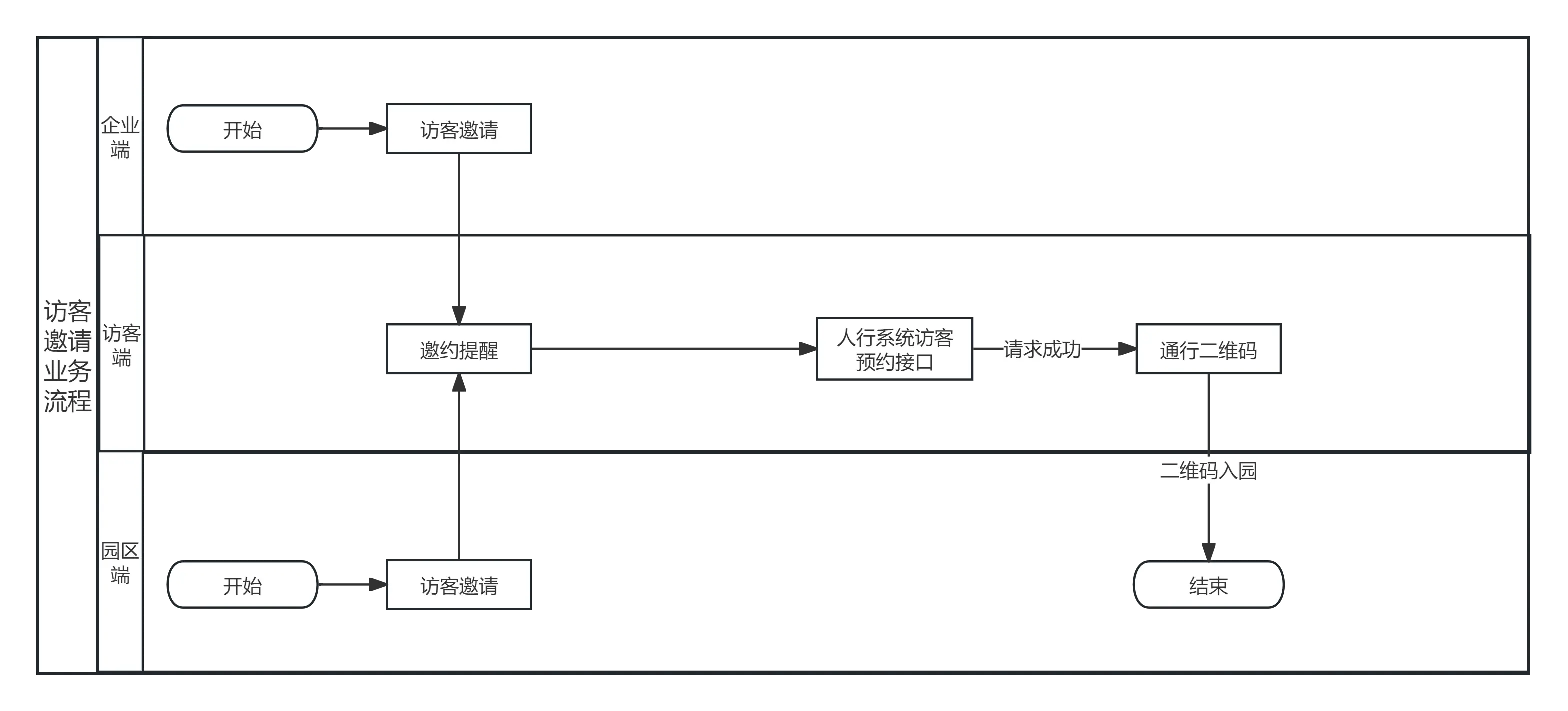 - 点击确认邀请按钮,创建访客邀请记录,请求富士行云访客邀请接口,请求成功,生成访客通行二维码,访客状态已通过。