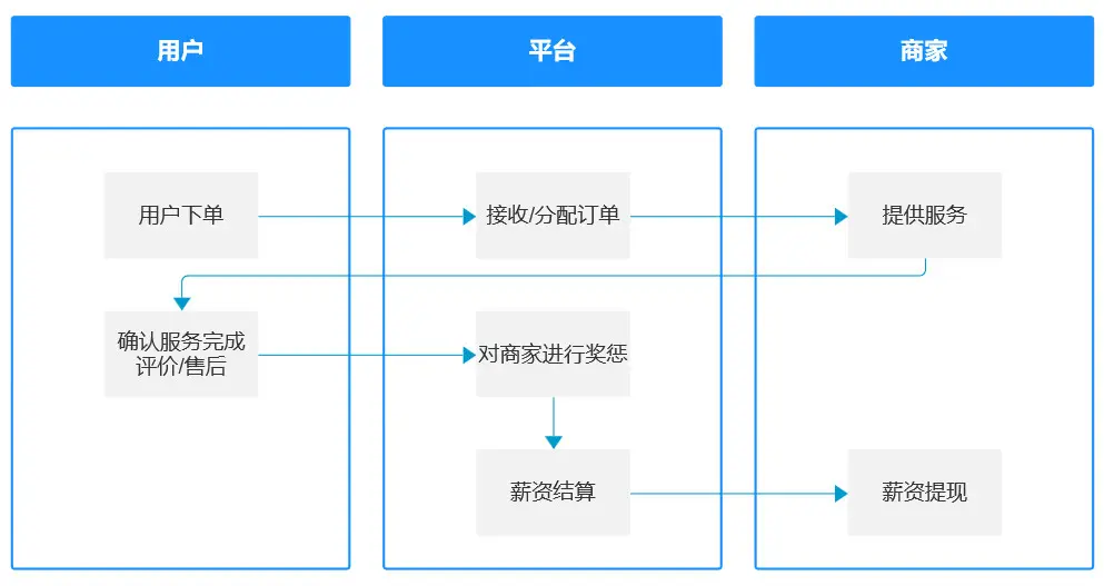 一个O2O业务涉及到用户、平台和商家(服务提供者)三方。用户在平台下单后,平台将订单派送给商家,由商家给用户提供服务,服务完成后用户和商家各自进行确认,之后用户将服务款支付到平台并且对服务进行评价/提出售后。 根据商家的服务情况、平台的运营规则等,平台可能会对商家进行一定的惩罚或者奖励。 之后,平台会按照一定的账期给商家结算薪资。 以上均完成,商家才可以从资金池中提现。 ![]() 01 为什么需要薪资结算系统 从上面的业务流程我们可以看到,平台并不是简单地将用户支付的服务款直接转给商家,也不是将服务费直接和商家分润,而是通过更加复杂的业务逻辑来分蛋糕。通过对服务费的合理分配,平台需要达到以下几点目标: