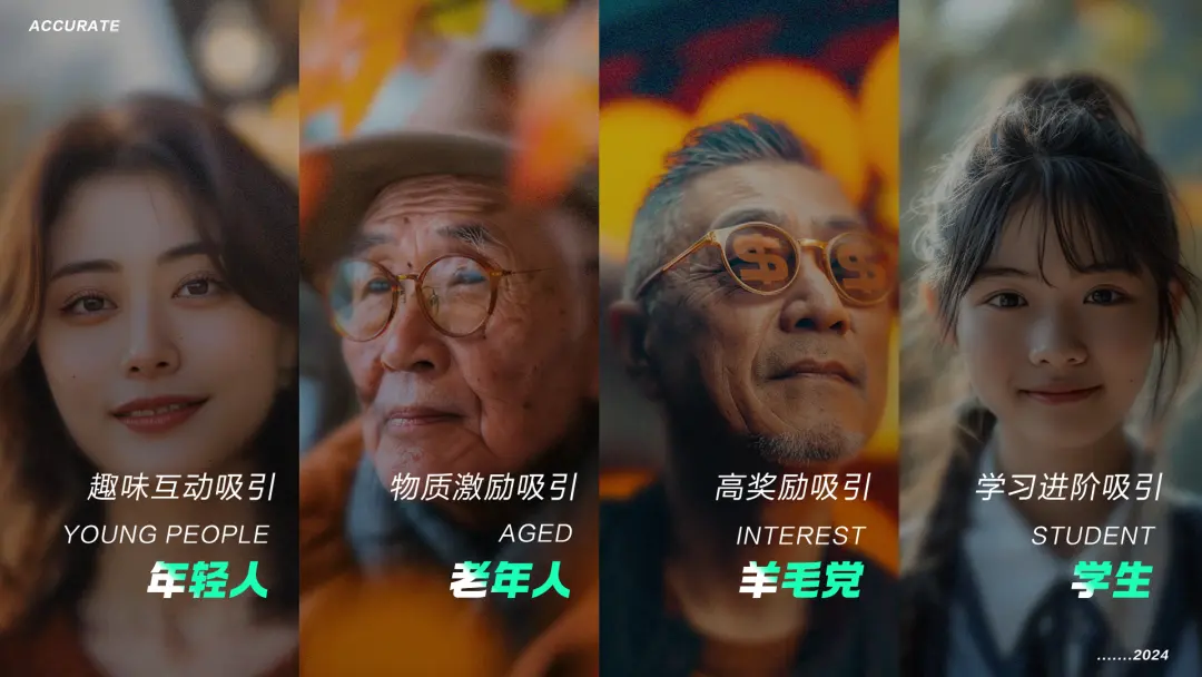 ![]() 进一步精细化用户后,我们发现年轻人、老年人、羊毛党和学生这四类群体数据较为突出。 针对这几类人群进行深入行为习惯调研与分析,我们发现: