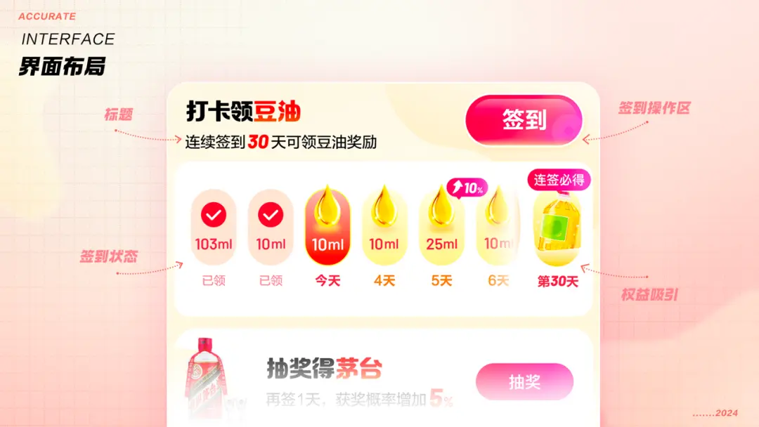 ![]() 二、定制化玩法策略 在构建详尽的用户画像之后,核心工作是通过深入剖析用户偏好,量身打造契合其兴趣的核心游戏机制。 具体而言,若目标群体热衷于解谜类游戏,则应构思错综复杂的谜题与逻辑严密的推理环节,以激发他们的好奇心与探索欲;针对偏好竞技挑战的用户,则需设计充满张力的对抗玩法,营造紧张刺激的竞争氛围。 在稳固这些核心玩法的同时,融入适度的创新元素,以捕获用户注意力并持续提升游戏的趣味性与吸引力。 下面以任务系统的「福猫送豆油」活动为例,阐述如何根据用户喜好快速确定玩法。 1. 根据用户喜好确定理念通过实物激励的策略聚焦,可锁定“老年人”用户群体作为活动对象。 这个群体在消费观念上往往更加注重实惠与性价比,他们也热衷于接受来自他人的礼物馈赠,这份喜悦常常能够超越物质本身的价值。 因此,整体玩法融入了“赠送”的核心理念。 ![]() 2. 通过理念推出具体玩法为体现赠送的诚意,秉持“轻松参与,即刻收获”的原则,可将活动做的更为直接,最终活动模型确定为签到玩法,确保每位老年用户来就能拿,轻松参与。 ![]() 3. 根据用户喜好确定激励奖品在奖品选择上,我们精心挑选了与老年用户生活紧密相关的实用奖品「豆油」,确保这些奖品能够切实满足他们的日常需求,从而进一步激发参与活动的热情与动力,同时也大幅提升他们的满意度与归属感。 ![]() 最终,活动确定为“用户每日签到,免费赢取豆油”的玩法。 该活动已成功上线并展现出显著成效,不仅大幅提升了用户的签到率与活动参与率,更显著增强了平台的用户留存价值。 运用同样的方法,在任务系统的其他活动中,根据不同用户画像,推出更多个性化差异化玩法。 如针对年轻群体推出以分享和合作为内容的「师徒裂变」玩法,针对羊毛党群体推出抢红包和金币的「金币红包雨」玩法,以及针对学生群体推出「答题赢证书」玩法。 这样不仅能够增强用户粘性,提升用户满意度,更有助于构建品牌口碑,吸引更多潜在用户的关注与参与。 ![]() 三、专属化视觉盛宴 视觉呈现的定制化策略,关键在于私人订制,营造专属的视觉氛围感受。 我们深入分析不同用户群体的特性与需求,设计出各具特色、贴合各类人群的视觉方案。 这些方案力求在视觉上触动用户,提升他们的参与感与归属感。 定制化策略不仅使视觉呈现更加个性化与差异化,更在无形中加深了品牌与用户之间的情感联系。 下面同样以任务系统的“福猫送豆油”活动为例进行说明。 1. 视觉风格定位为了迎合老年人对柔和温暖色调的偏好,活动选用粉黄色作为基调,营造出一种温馨舒适的氛围,让老年用户在参与过程中感受到家的温暖与安心。 依据色彩心理学原理,粉黄色能有效激发用户的正面情绪,对增强活动吸引力、提升参与热情及满意度具有显著的正向作用。 ![]() 同时,紧扣老年人渴望陪伴的情感需求,以“福猫”作为活动IP形象。 福猫被赋予了温和、圆润可爱、憨态可掬的特质,通过细腻的表情与生动的动作设计,展现出一种极易亲近的亲和力,传递出无尽的温暖与深切的关怀。 此外,加入互动对话玩法,不仅增添了趣味性,还让老年用户感受到与“福猫”之间真挚的情感交流,进一步加深了彼此的情感联系,从而全面提升了用户的参与体验与满意度。 ![]() 2. 界面布局与玩法渗透针对老年人视力普遍下降的特点,界面设计确保信息清晰易读。 优化字体样式,选择易于识别的无衬线字体,减少阅读障碍,提升用户体验。 签到界面遵循简洁明了的原则,通过直观的日历视图展示每日签到情况,老年用户可以一目了然地了解自己的签到进度。 结合醒目的图标和清晰的奖励提示,激发用户的持续参与动力。 此外,界面布局也充分考虑老年人的操作习惯,减少不必要的元素干扰,确保用户能够轻松完成签到动作。 ![]() 同样,任务系统中的其他长线活动也深度融入用户偏好,实施全方位的视觉定制策略,包括色彩选择、画面质感、UI布局及IP元素的融合。 对于“年轻人”,我们采用高饱和度色彩搭配与独特的粘土艺术风格视觉,以激发其新鲜感与活力。 ![]() 针对热衷于奖励机制的“羊毛党”,则采用醒目的红包金币元素设计,强化利益感知,激发参与热情。 ![]() 面向“学生”,则引入富有教育意义的校园风视觉风格,旨在寓教于乐,丰富其知识体验。 ![]() 每一项视觉定制策略都经过精心策划,旨在从视觉上直击用户心灵,精准捕捉并满足目标受众的审美偏好与情感需求。 这些独一无二的视觉元素不仅营造出极具个性化的活动氛围,有效提升了活动的辨识度和吸引力,还促进了信息的深度传达与受众的情感共鸣。 最终,这一系列举措显著增强了用户的参与感与归属感,为活动的成功奠定了坚实的基础。 写在最后 用户细分与定制化运营是企业提升市场竞争力、实现可持续发展的关键策略。 我们通过深入理解用户需求,精准细分用户群体,融合创新的玩法设计与视觉呈现,成功打造出一系列贴合用户需求的运营活动,从而在激烈的市场竞争中脱颖而出。 展望未来,随着技术的持续进步和用户需求的日新月异,我们将不断探索和实践新的用户细分与定制化策略,以灵活应对市场的快速发展,持续引领行业潮流。 作者【百度MEUX】,微信公众号:【百度MEUX】,未经许可,禁止转载。 文章来源:“百度MEUX”,未经