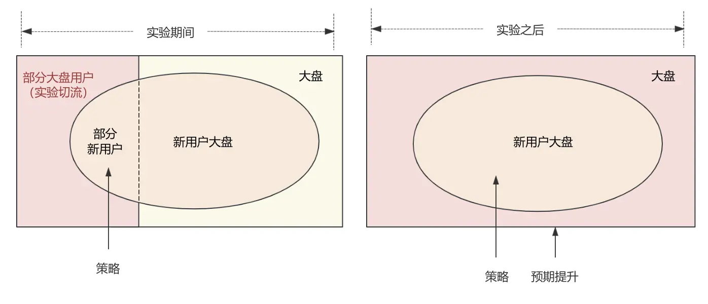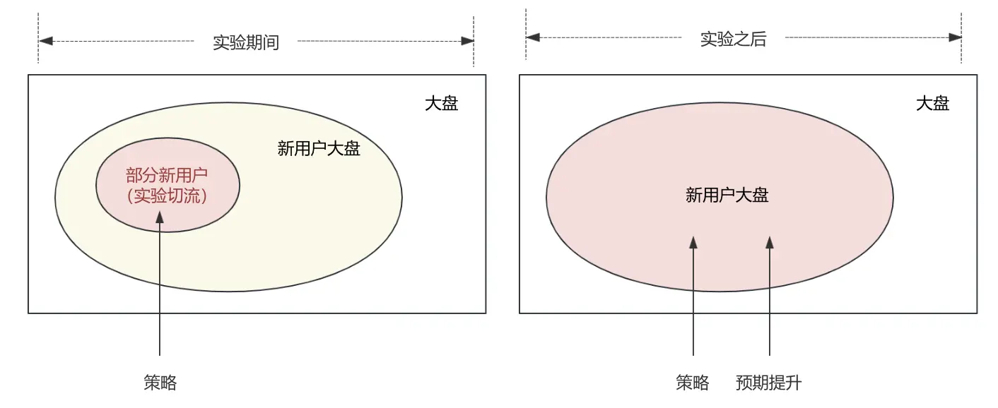 一、使用AB实验的痛点AB实验由于以统计学为基础,并且在实际应用过程中,又产生了一些新的方法论,存在较多专业术语,理解和使用门槛较高。 另外还存在一个普遍的现象,平时沟通时不时提及一些实验术语,但是却没有真正理解其原理,导致一旦出现问题,脑袋就像被猫抓乱的毛线球,完全不知道从哪里下手。一顿术语猛如虎,结果基础都没懂,喵~ 二、这篇文章的目的 本文的目的在于厘清互联网 AB 实验的核心思路。通过剖析互联网 AB 实验的原理,以及在实际应用中的方法,让读者能够清楚地了解其背后的逻辑。读完后,能知道那些常见的专业术语为什么被提出(在实际应用中,为什么被提出,比是什么更重要)。当出现问题,能够有更清晰的全局思维来定位。 老规矩,文中所提及的术语会标蓝,可自行扩展阅读。 三、互联网AB实验的核心思路 笔者认为,互联网AB实验的核心思路是:利用数据去证明“设想”是否“靠谱”。 里面有两个关键词“设想”和“靠谱”,为了方便大家更易理解,抛几个自问自答: 1、为什么要有“设想”这一步?不可以直接从数据表现里推导出结论吗?目前来说,是不可以的。因为互联网AB实验的数学基础,就是建立在假设验证之上。我们需要先有一个“设想”,即某个变量可能对整体有或者没有影响,然后通过实验数据来验证这个设想是否成立。当然,可能没准儿哪天有新的数学突破能绕过假设呢?但在此之前,我们仍然需要依靠假设验证来进行AB实验,否则会存在事后解释的问题。 2、为什么是“靠谱”,不是“正确”?这是因为,在统计学中,任何实验结果都有犯错的概率。第一类错误是“弃真”,即拒绝了正确的假设;第二类错误是“纳伪”,即接受了错误的假设。在样本一定的情况下,无法同时降低第一类和第二类错误的概率。因此,我们需要在两者之间做出权衡。通常,我们会尽量不犯第一类错误,这是因为“弃真”后,我们可能会真正错过一个有效的策略,而“纳伪”后,我们还可以有其他机会发现它是错误的。 3、那怎么衡量有多“靠谱”呢?以及多靠谱才算“靠谱”?前面说到尽量不犯“弃真”错误。我们常见的“P值”可以姑且被看作是犯“弃真”错误的实际概率(衡量具体有多靠谱),而“显著水平α”就是犯“弃真”错误的概率上限(我们自行设定的靠谱标准), P值像我们考试的得分,α像我们考试的合格线。所以按照这个思路,我们的设想会有一个“成绩”P值,然后和α比较下,看这个设想有没有“合格”。 另外我们的设想往往是估一个区间,比如假设某指标提升x%以上(正向,单尾检验)或者减少x%以上(负向,单尾检验)或者指标有变化(双尾检验)。区间估计的范围越大,包含真实参数值的概率就越高,但精确度会相应降低。这就像我们小时候让父母猜考试成绩,父母说‘60分以上’(一个较宽的区间估计)比说‘90分以上’(一个较窄的区间估计)更有可能猜中,但如果我们实际考了91分,那么后者的精确度会更高。同理,‘有提升’肯定比‘提升x%以上’更容易猜中(拿到“合格证”),但是精确度没那么高,对业务的指导价值会更有限。 那可以“合格”的同时又尽量“精确”吗?按前面的思路,如果富有经验可以,否则不太行。于是我们换了一种思路,不看P值了,只看合格线。拿合格线(置信水平1-α)来倒推这个指标的区间在哪里(置信区间)。 所以总得来说,如果你有一个明确的指标预期,可以直接使用P值来判断;如果你没有很明确或者希望探索更广泛的可能性,使用置信区间更为合适,目前后者在业内使用更广泛。 四、互联网AB实验的难点及各类方法 在实际工作中,当我们要利用数据去证明“设想”的时候,不外乎是把“设想”作为一个变量,注入到流量里,然后看这个流量有没有变化。方法论有,思路也简单,那难在哪里呢? 互联网AB实验是以统计方法论为基础(数学层),将其尽可能转化应用到实际的业务中(操作层)。对于我们来说,真正的难点并不在数学层,而是在转化应用的过程中,要同时满足业务需求和数学条件,而采用的各类方法以及数据解释。 可能有些抽象,为了方便理解,笔者将业务需求和数学条件进行了归类 3类业务需求:用户体验、流量切分、数据解释 3个数学条件:单一变量原则、样本随机且足量原则、显著性原则 注:互联网AB实验主要是以“样本A和B在部分指标上是否存在显著差异”(独立样本T检验/双样本Z检验)的方式进行实验,因此本文的数学条件基于该方式提出。 下面我们围绕3类业务需求,来阐释在操作层可能遇到的问题,以及业界对应的各类方法。 1、用户体验实验本身的目标是向用户推出一系列被证实过的“好设想”从而提升用户行为。但在实验执行的过程中,可能会存在与用户体验相悖的情况,因此平台需要在实验设计时充分考虑用户体验的问题。比如: 实验是为了验证“设想”,在拿到实验结果前,我们没法确定这个设想是好是坏。如果是坏的设想,对用户体验自然会有负影响,同时坏的实验往往会被停止,用户前后的体验会不一致。基于此,实验的范围越小越好。但是在数学条件里又要求“样本足量原则”,因此在实验前往往需要做最小样本量评估。 另外,互联网里的一个“用户”,可能是一个设备/账号ID、或者请求ID,如果某个实验的改动在用户体验上有所感知(比如UI调整),那为了用户体验的一致性,则需要使用设备/账号ID来作为